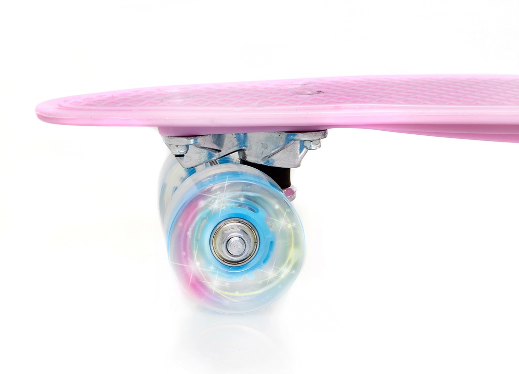 Skateboard Retro 7414 je vhodný pro začínající a pokročilé skateboardisty na klasickou jízdu a běžné triky. Skateboard je vybaven svítícími kolečky, která začnou svítit, jakmile jsou uvedena do pohybu.