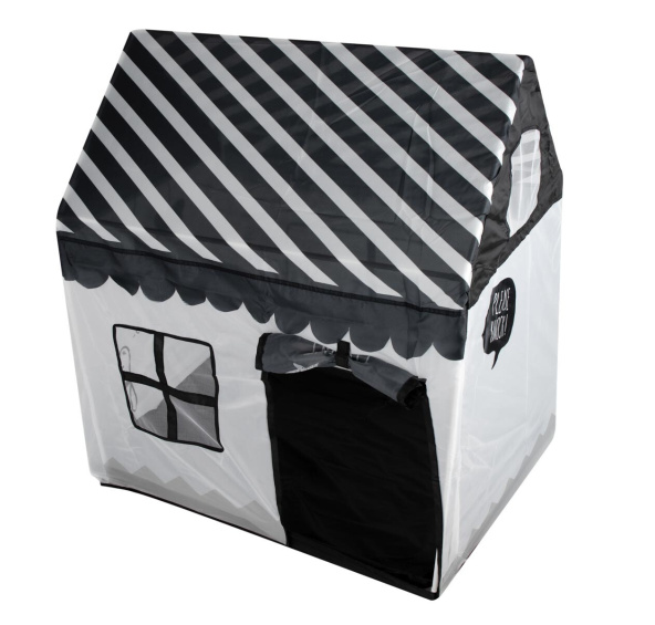 Fantastický látkový domeček pro děti. Má síťovaná okna, která propouštějí světlo a vzduch. Domeček lze postavit v interiéru nebo za slunečných dnů na zahradě.