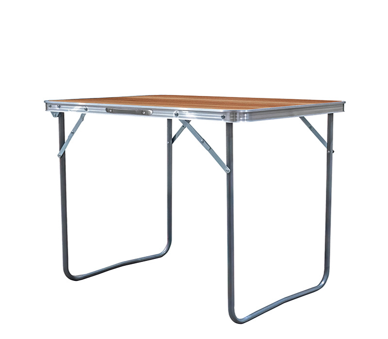 Kempingový stolek se dá složit do podoby malého kufříku. Součástí je i ucho, za které se dá složený stolek snadno přenášet.