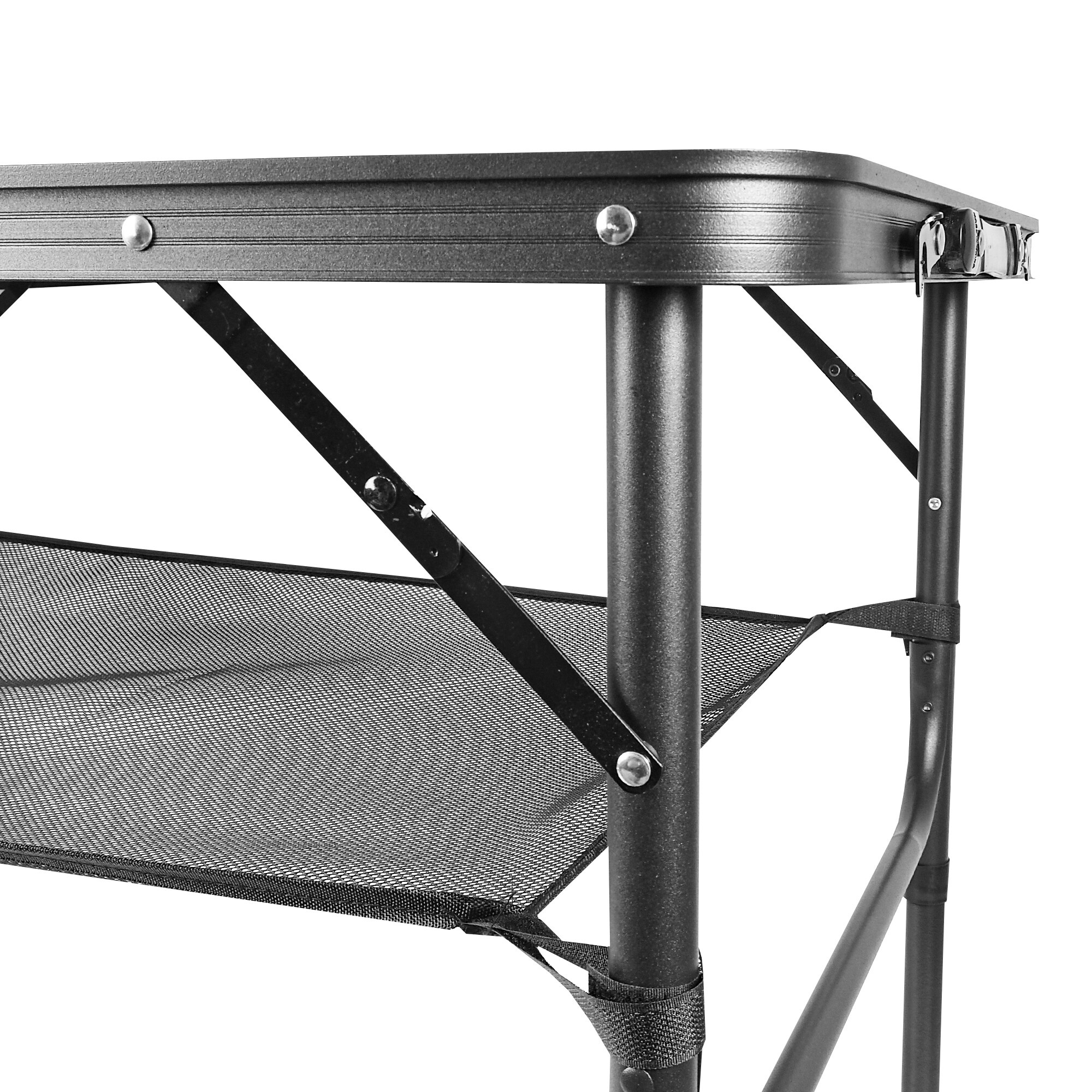 Jednou z výhod tohoto kempingového stolku je odkládací síťka umístěná pod deskou stolku. Tato praktická síťka poskytuje dodatečný úložný prostor pro odkládání drobných předmětů.