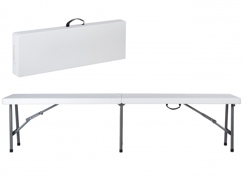 Lavice je vybaven systémem rychloupínacích konektorů, díky kterému jeho rozkládání / skládání probíhá hladce a rychle.  Součástí je i ucho, za které se dá složený stolek snadno přenášet. Sedací deska je vyrobena z nejkvalitnějších polyethylenových materiálů s UV filtrem.