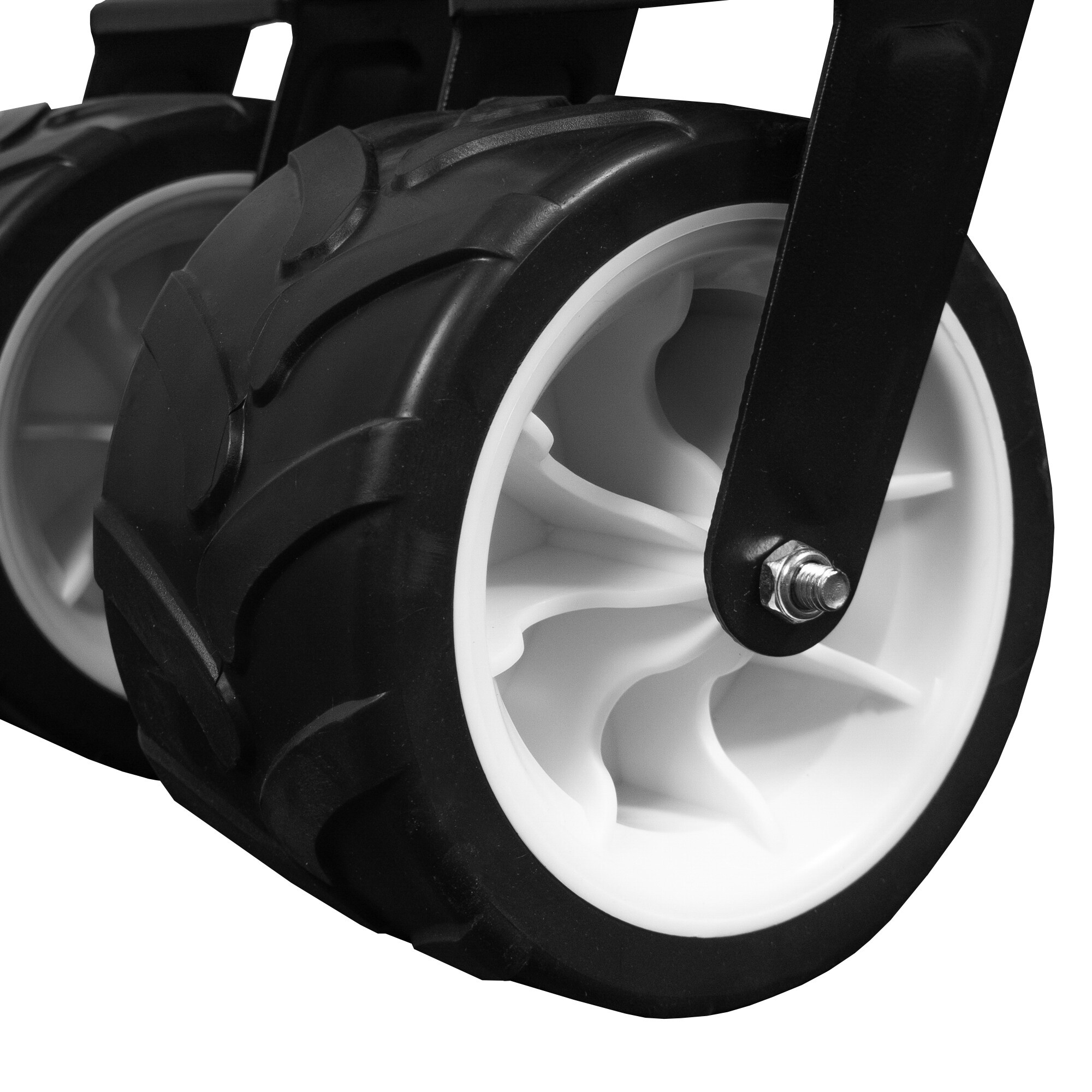 Díky velkému nákladovému prostoru vejde do vozíku vše potřebné a převezete jej na extrémně odolných plastových kolech, která dobře poslouží i při jízdě v terénu.