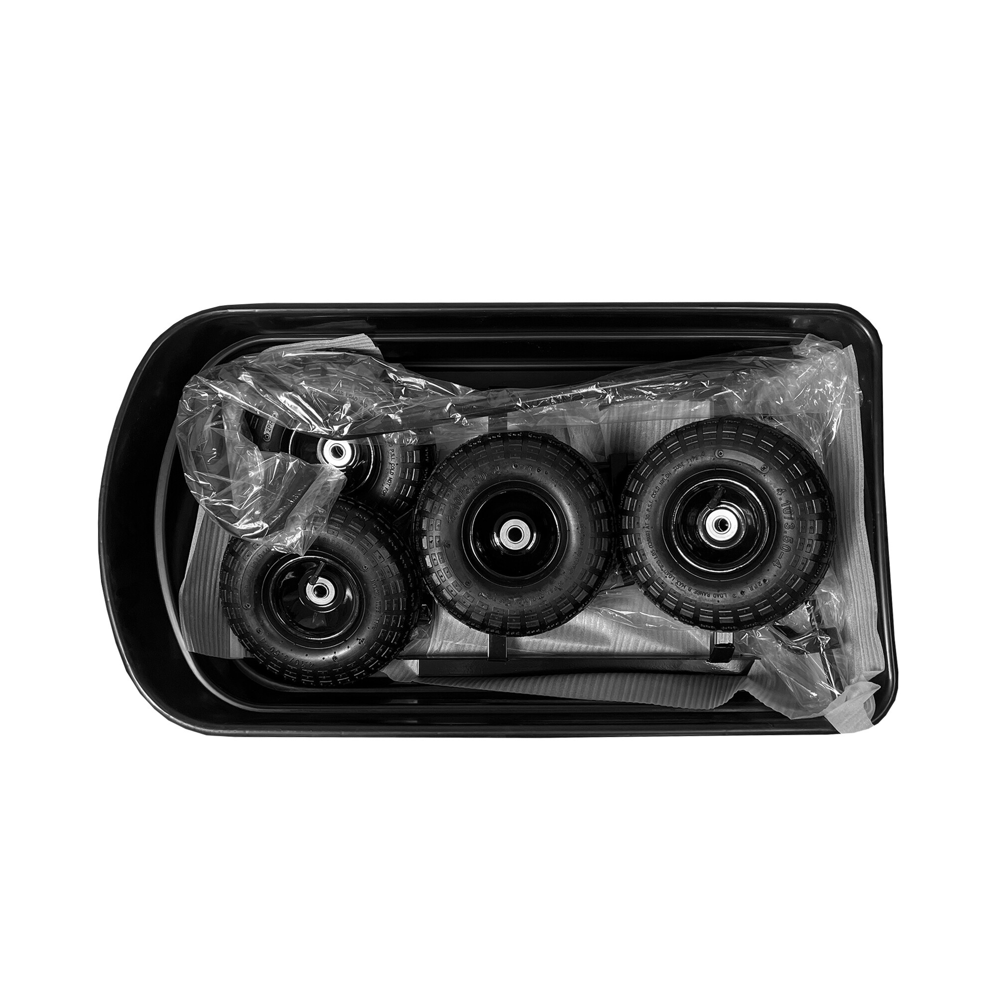 Díky řiditelné přední nápravě je manipulace s vozíkem snadná a pohodlná. Můžete ho snadno ovládat i v úzkých prostorech a na nerovném terénu. Přepravní vozík je vybaven čtyřmi nafukovacími koly, která zajišťují hladký a stabilní pohyb i na nerovném povrchu. Kola jsou navržena tak, aby zvládla i náročné podmínky a poskytovala maximální komfort při přepravě.
