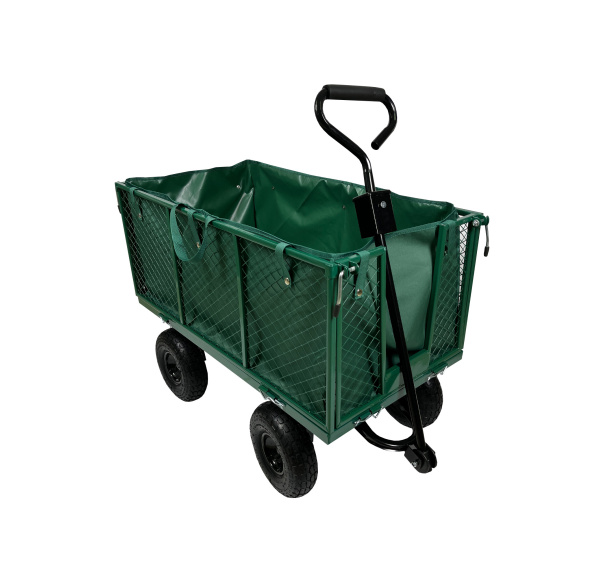 Zahradní vozík má i vnitřní plachta pro přepravu sypkých nákladů pokud plachtu nebudete potřebovat stačí ji z vozíku vyjmout.