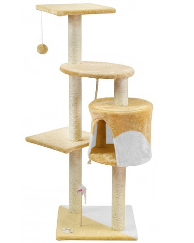 Škrabací strom omotaný kvalitním a silným sisalem jí kdykoliv poslouží k nabroušení drápků, aniž byste riskovali, že to udělá přesně tam, kde nechcete. Současně to bude díky hebkému veluru její oblíbené místo k odpočinku a hře.