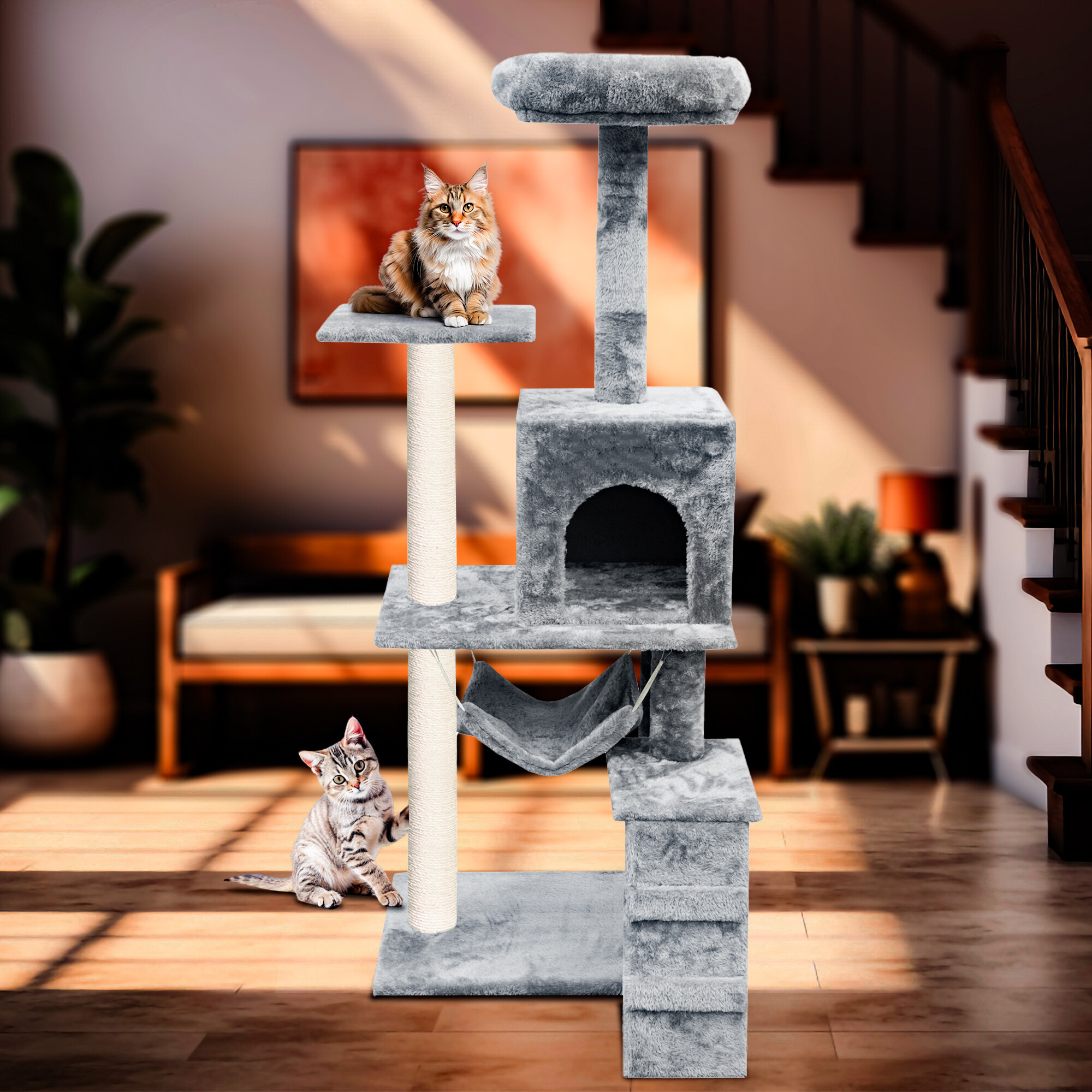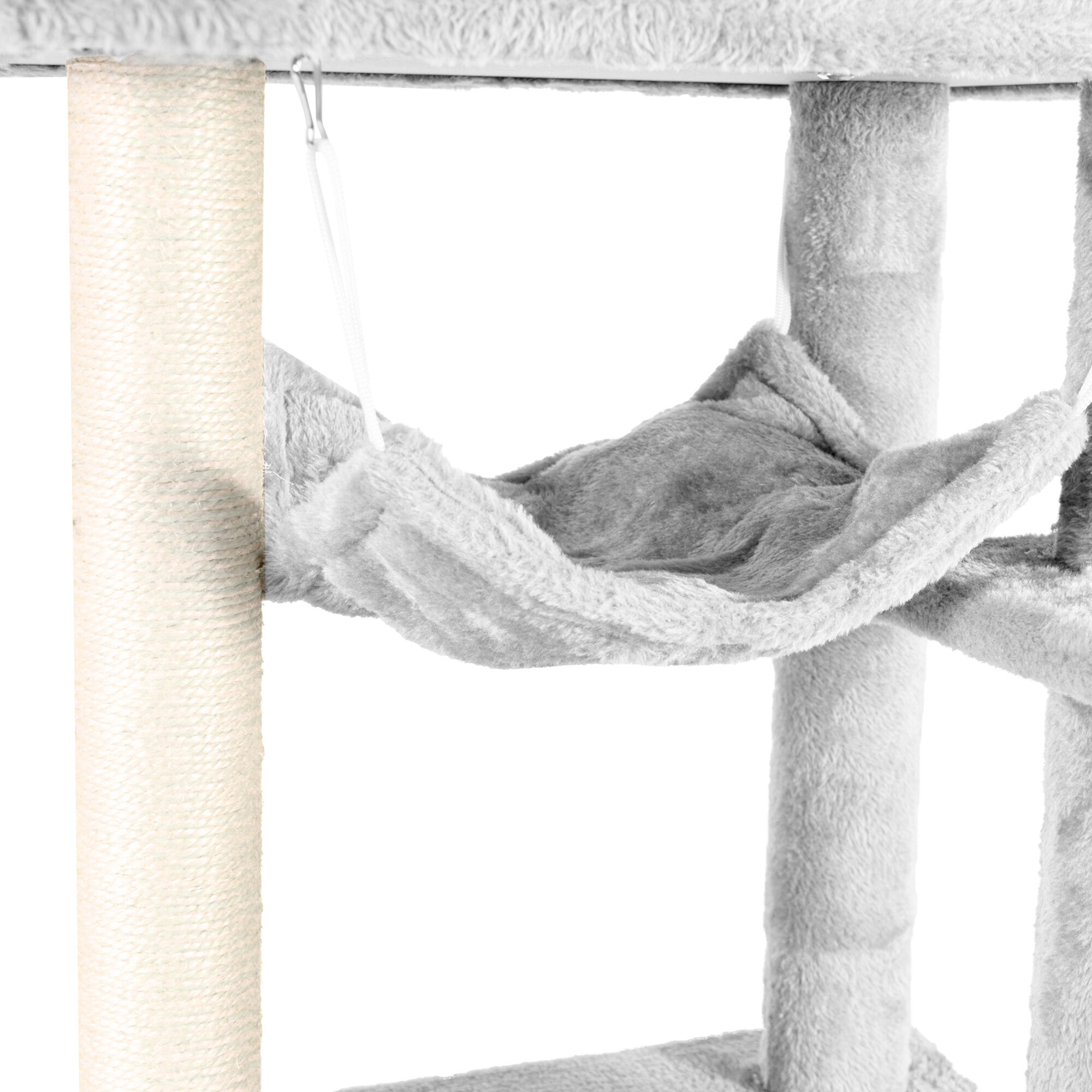 Škrabací strom omotaný kvalitním a silným sisalem jí kdykoliv poslouží k nabroušení drápků, aniž byste riskovali, že to udělá přesně tam, kde nechcete. Současně to bude díky hebkému plyši její oblíbené místo k odpočinku a hře.