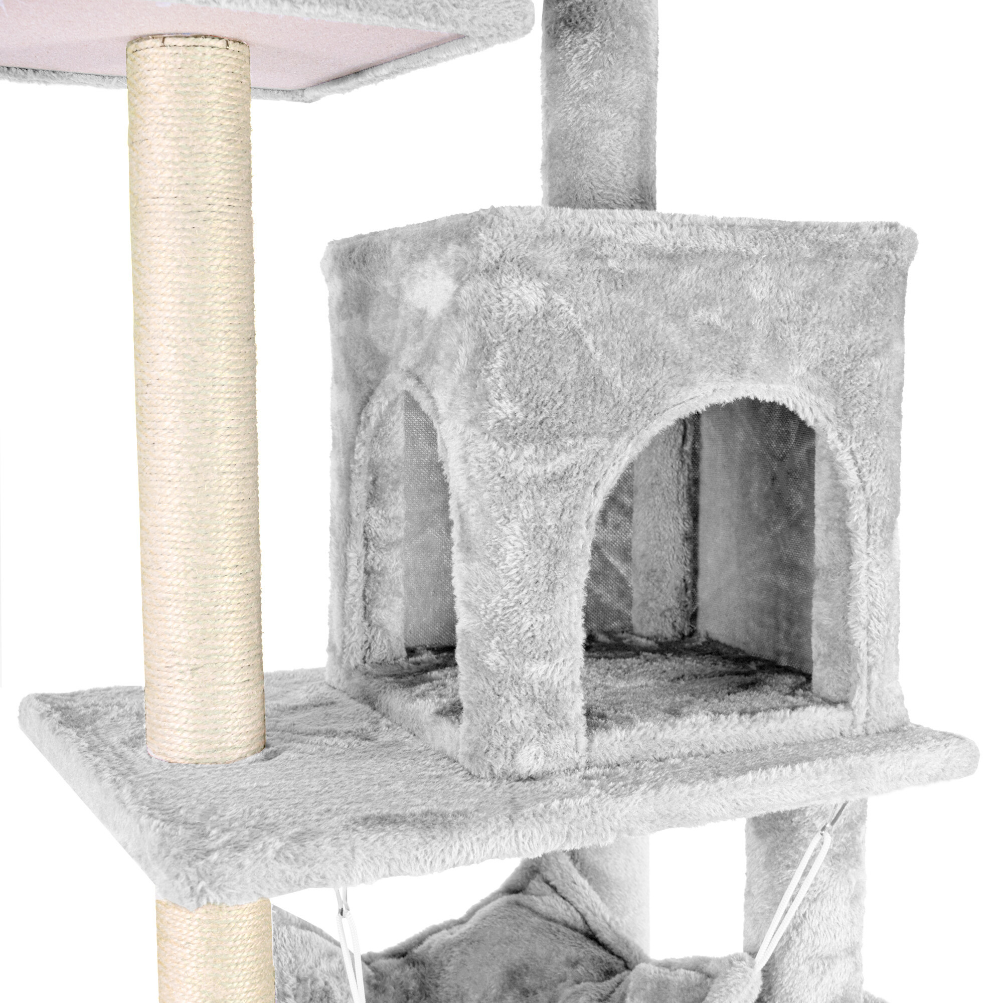 • Škrabadlo obsahuje: 1 domečky pro možnost úkrytu, 3 odpočívadla a sloupky potažené sisalem