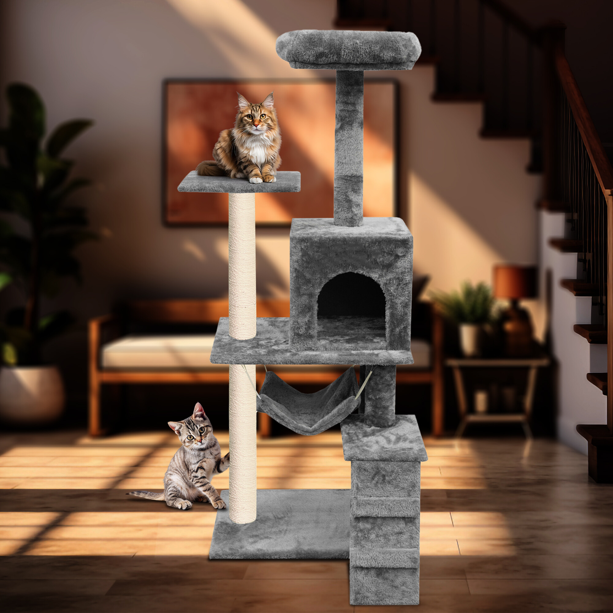 Škrabací strom omotaný kvalitním a silným sisalem jí kdykoliv poslouží k nabroušení drápků, aniž byste riskovali, že to udělá přesně tam, kde nechcete. Současně to bude díky hebkému plyši její oblíbené místo k odpočinku a hře.