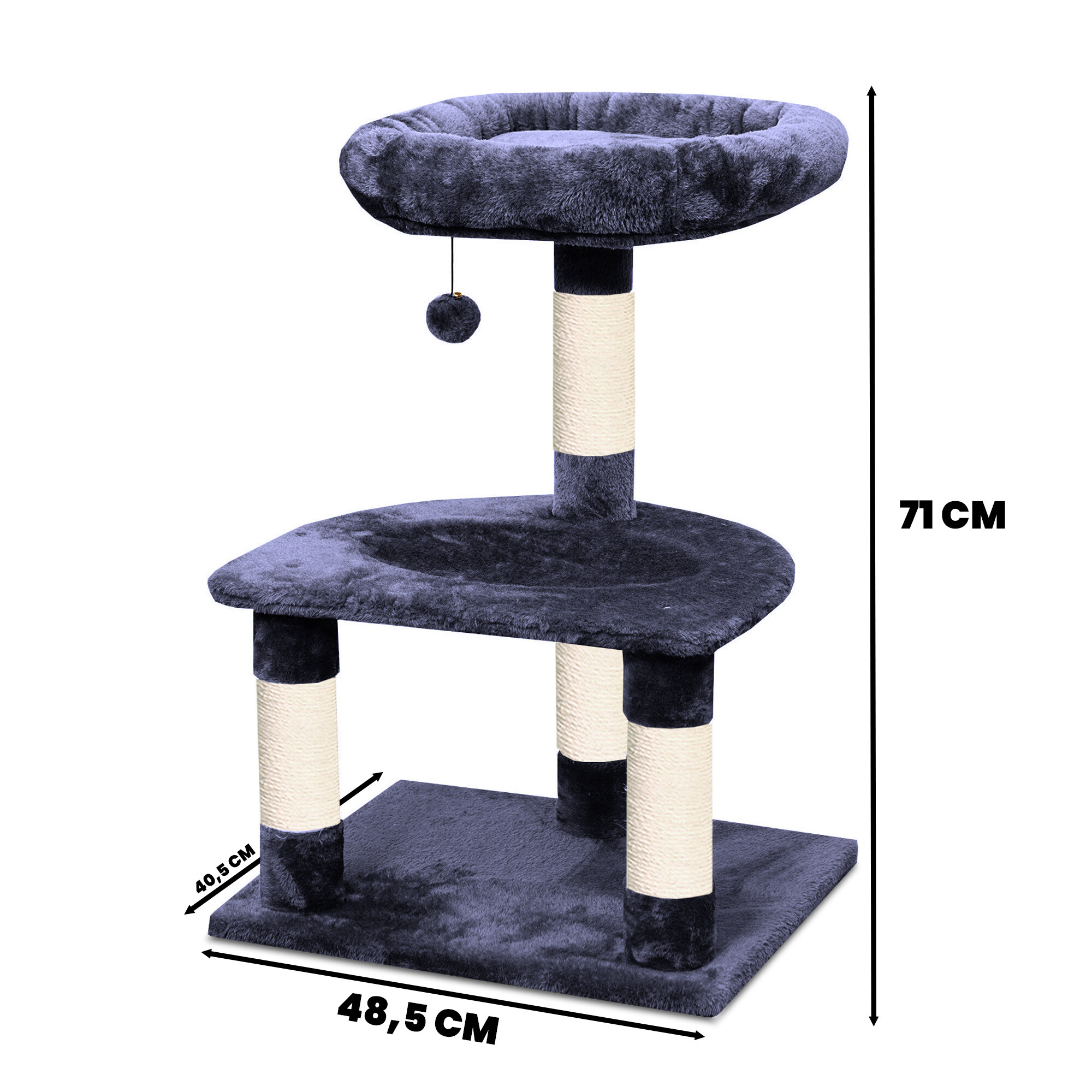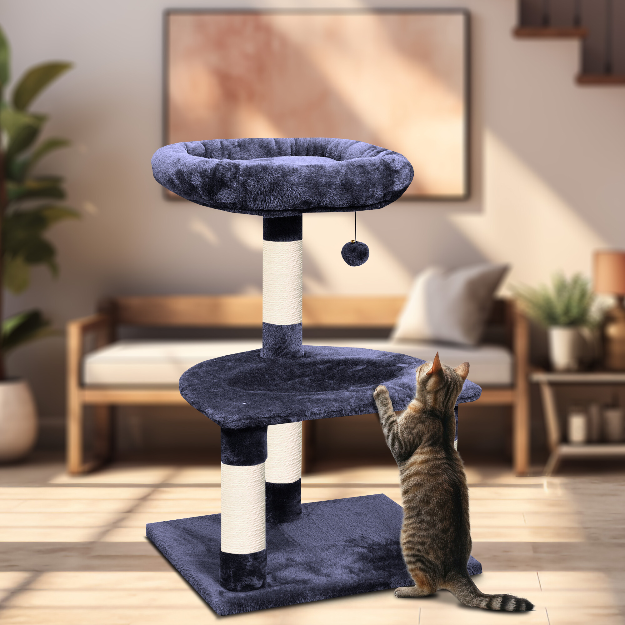 Škrabací strom omotaný kvalitním a silným sisalem jí kdykoliv poslouží k nabroušení drápků, aniž byste riskovali, že to udělá přesně tam, kde nechcete. Současně to bude díky hebkému plyši její oblíbené místo k odpočinku a hře.