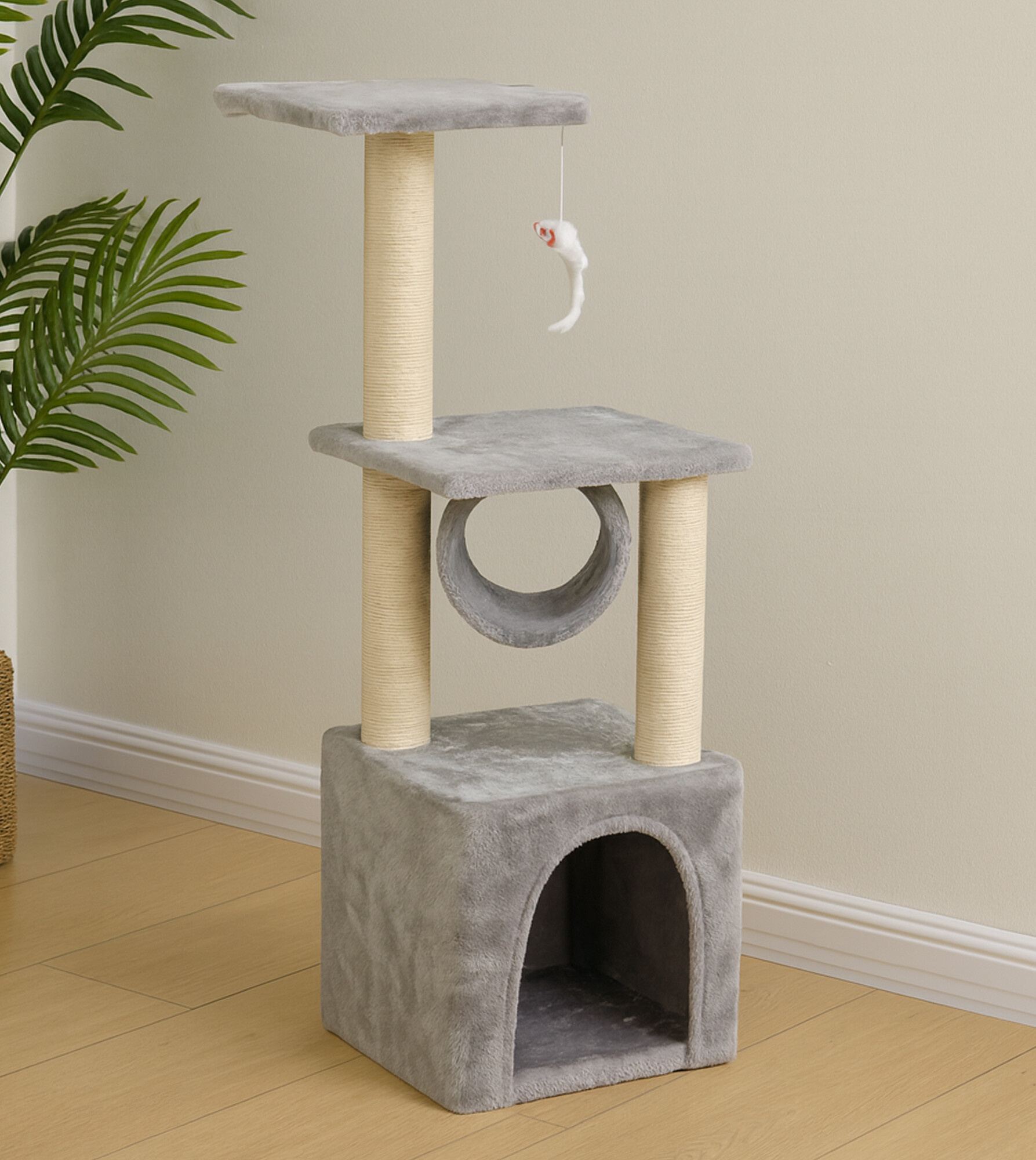 Škrabací strom omotaný kvalitním a silným sisalem jí kdykoliv poslouží k nabroušení drápků, aniž byste riskovali, že to udělá přesně tam, kde nechcete. Současně to bude díky hebkému plyšu její oblíbené místo k odpočinku a hře.