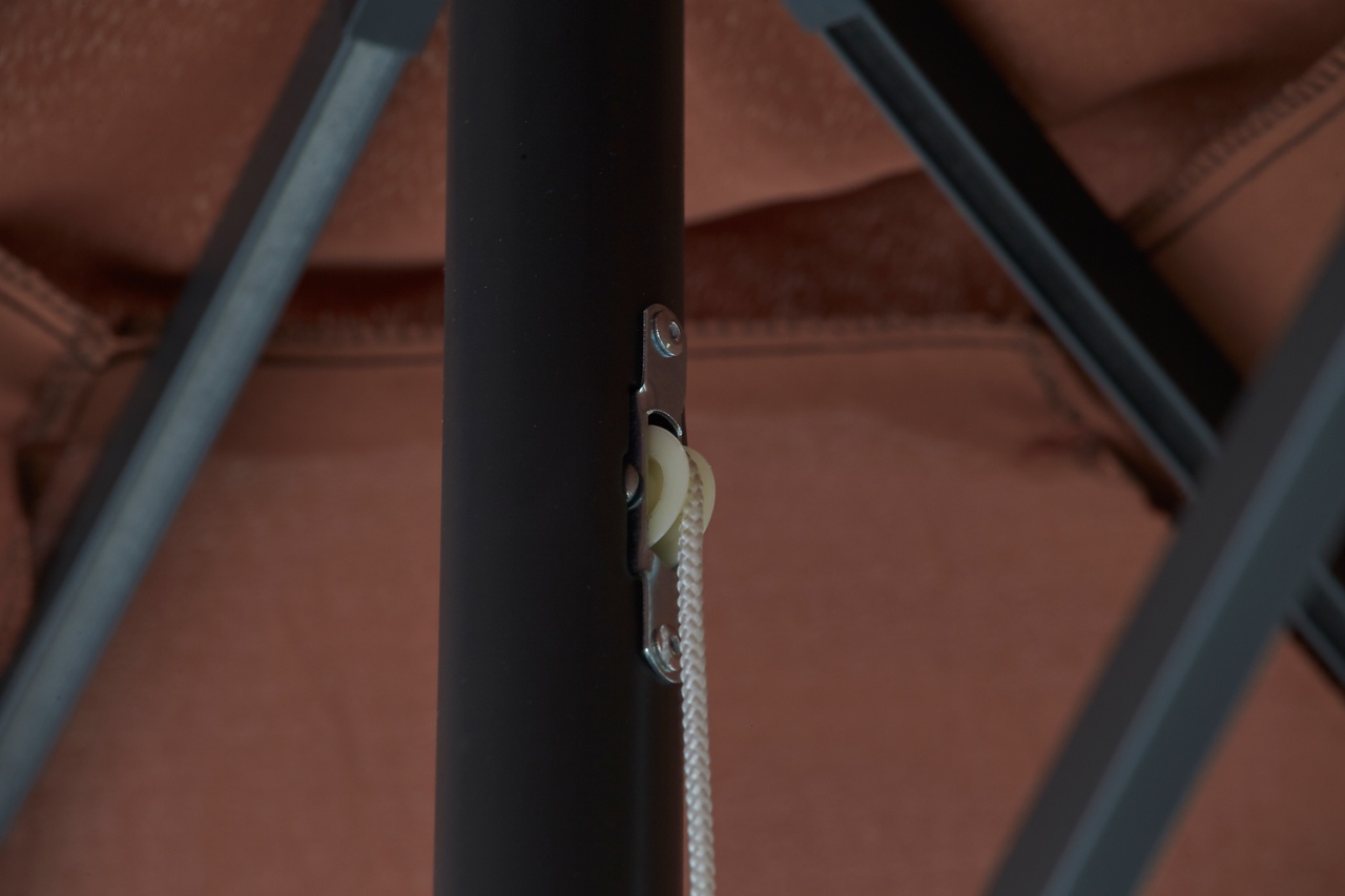 Snadnou manipulaci při rozkládání a skládání slunečníku zajišťuje jednoduchý klikový mechanismus.