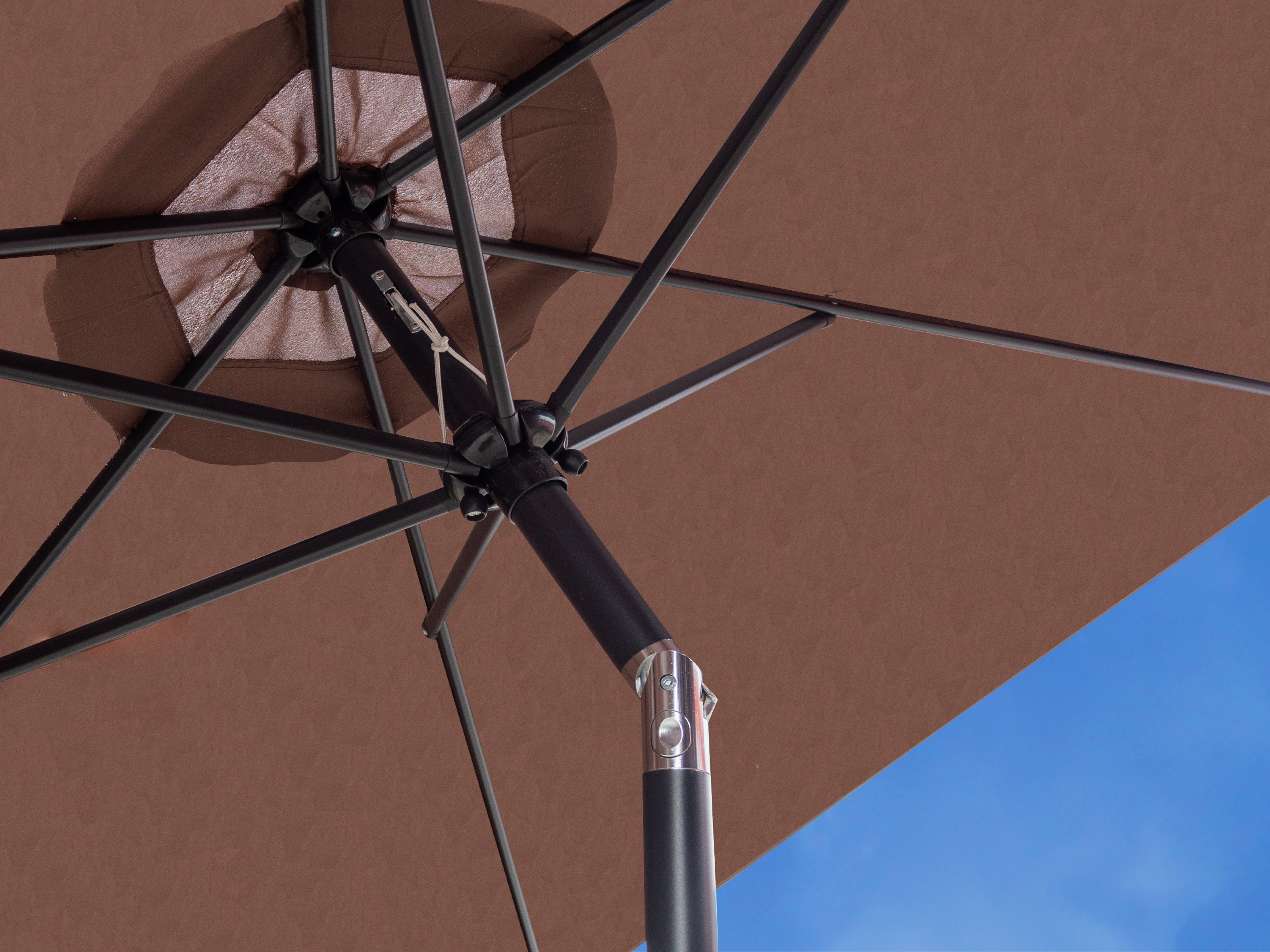 Slunečník je možné snadlo naklopit díky naklápěcímu kloubu.