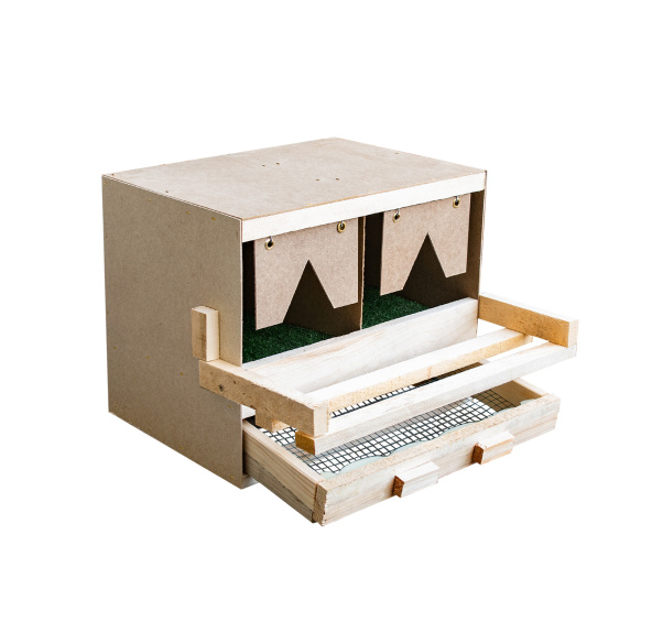 Jeho dvoumístná konstrukce umožňuje, aby dvě slepice mohly snášet vejce současně, což je vhodné pro menší i středně velké chovy.