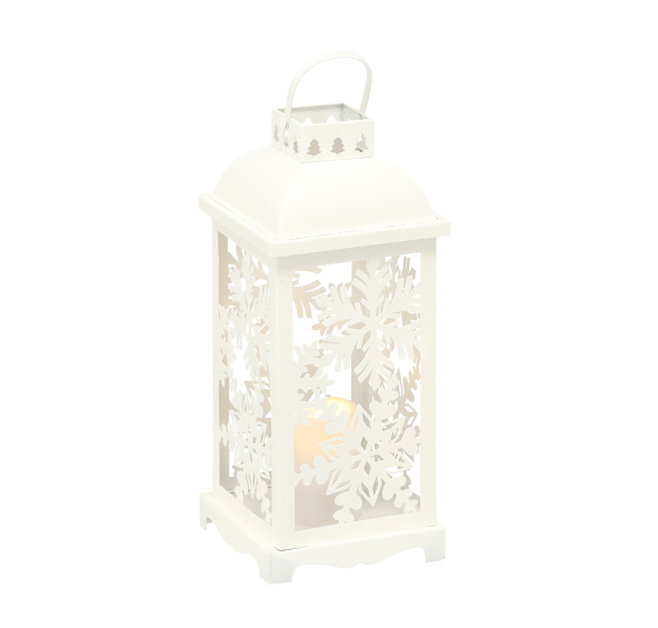 Lucerna je vyrobena z kvalitního kovu, který zajišťuje její dlouhou životnost a odolnost. Na povrchu lucerny jsou vyřezány jemné ornamenty ve tvaru sněhových vloček, které vytvářejí nádherné světelné efekty, když je lucerna rozsvícena.