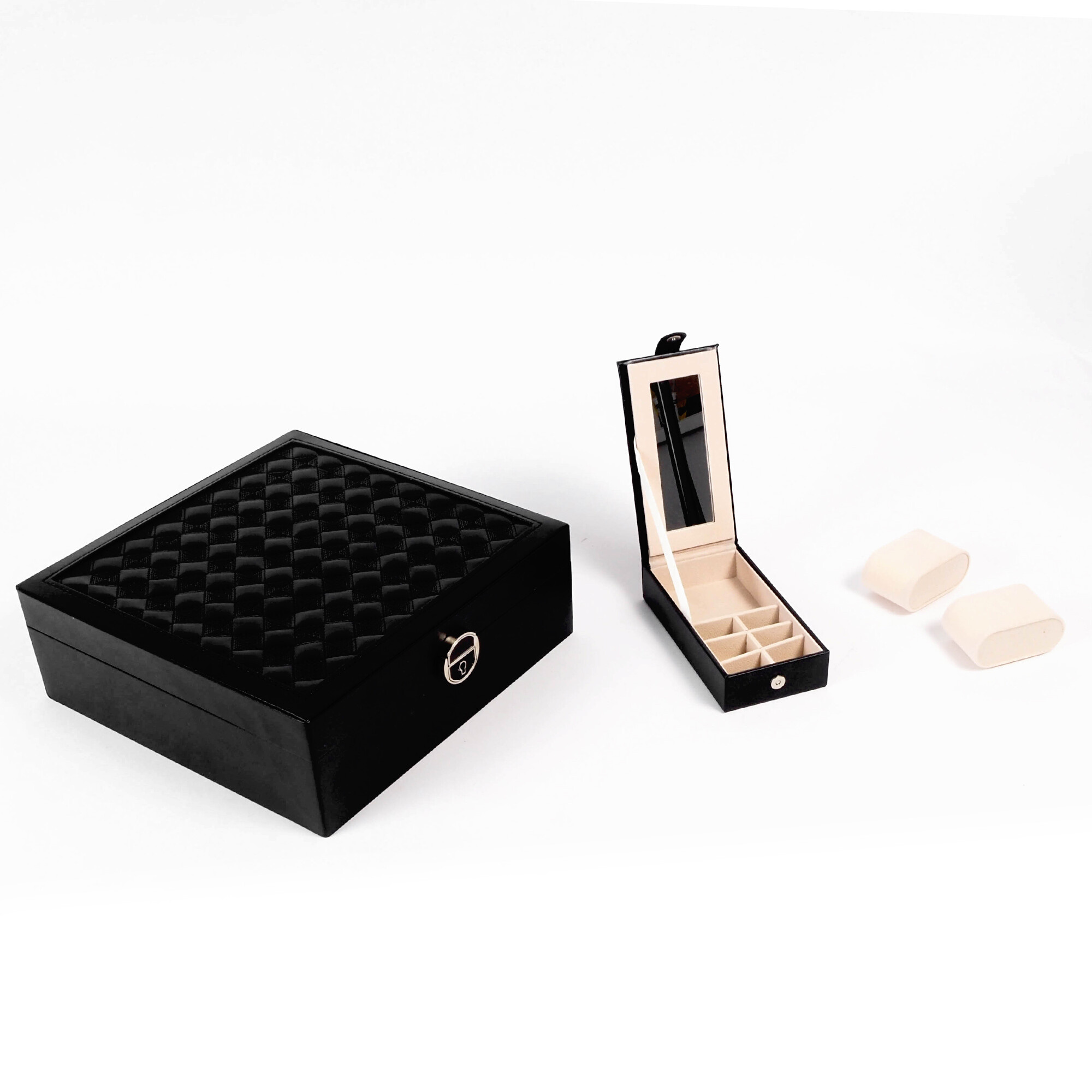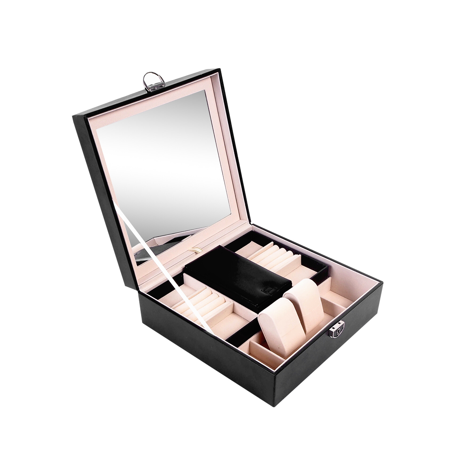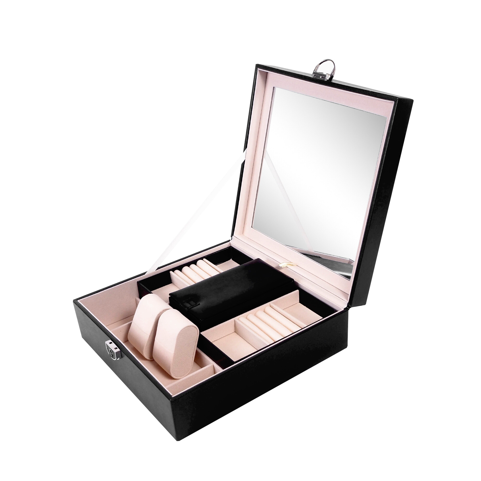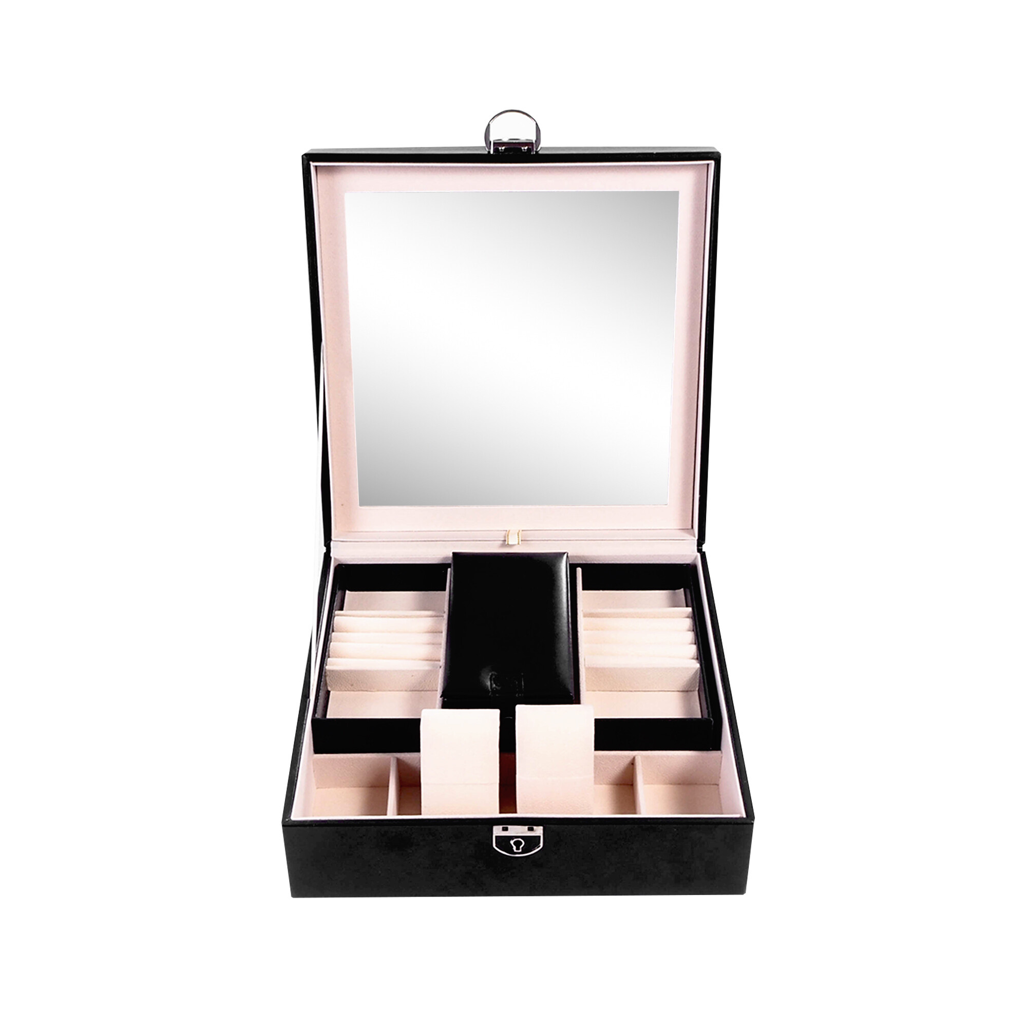 Jedním z hlavních předností této šperkovnice je integrované zrcátko, které vám umožní rychle a pohodlně zkontrolovat svůj vzhled. Zrcátko je umístěno na vnitřní straně víka, takže je vždy po ruce, když ho potřebujete.