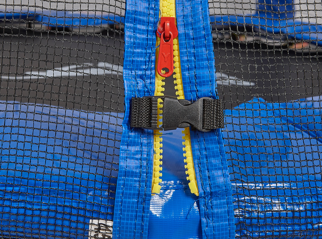 Vysoká ochranná síť má vstup na zip, který je zajištěn pojistkou proti samovolnému rozepnutí.