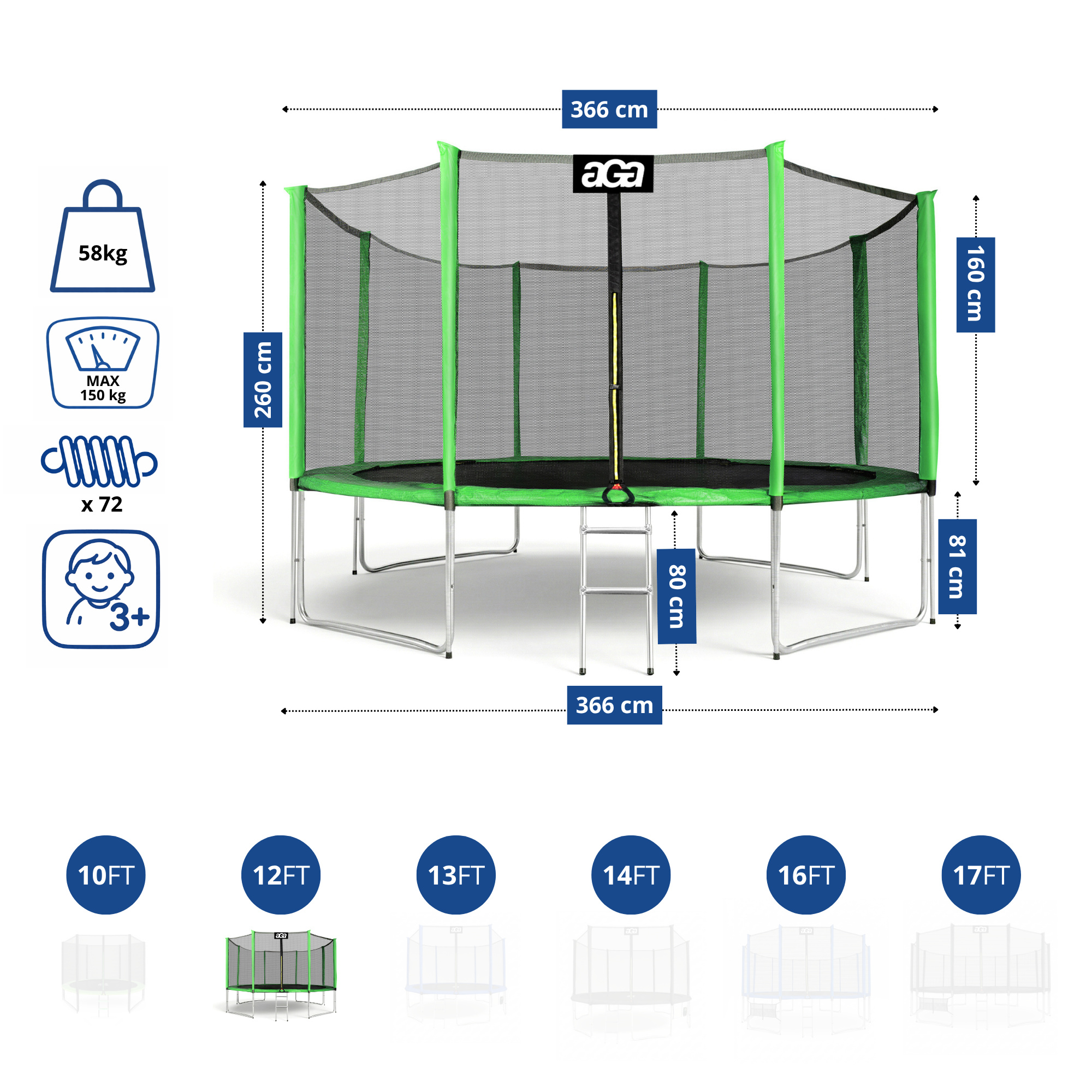 Maximální možnou bezpečnost pak zajištuje polstrovaný obvodový pás (kryt pružin), který překrývá pružiny po celém obvodu trampolíny.