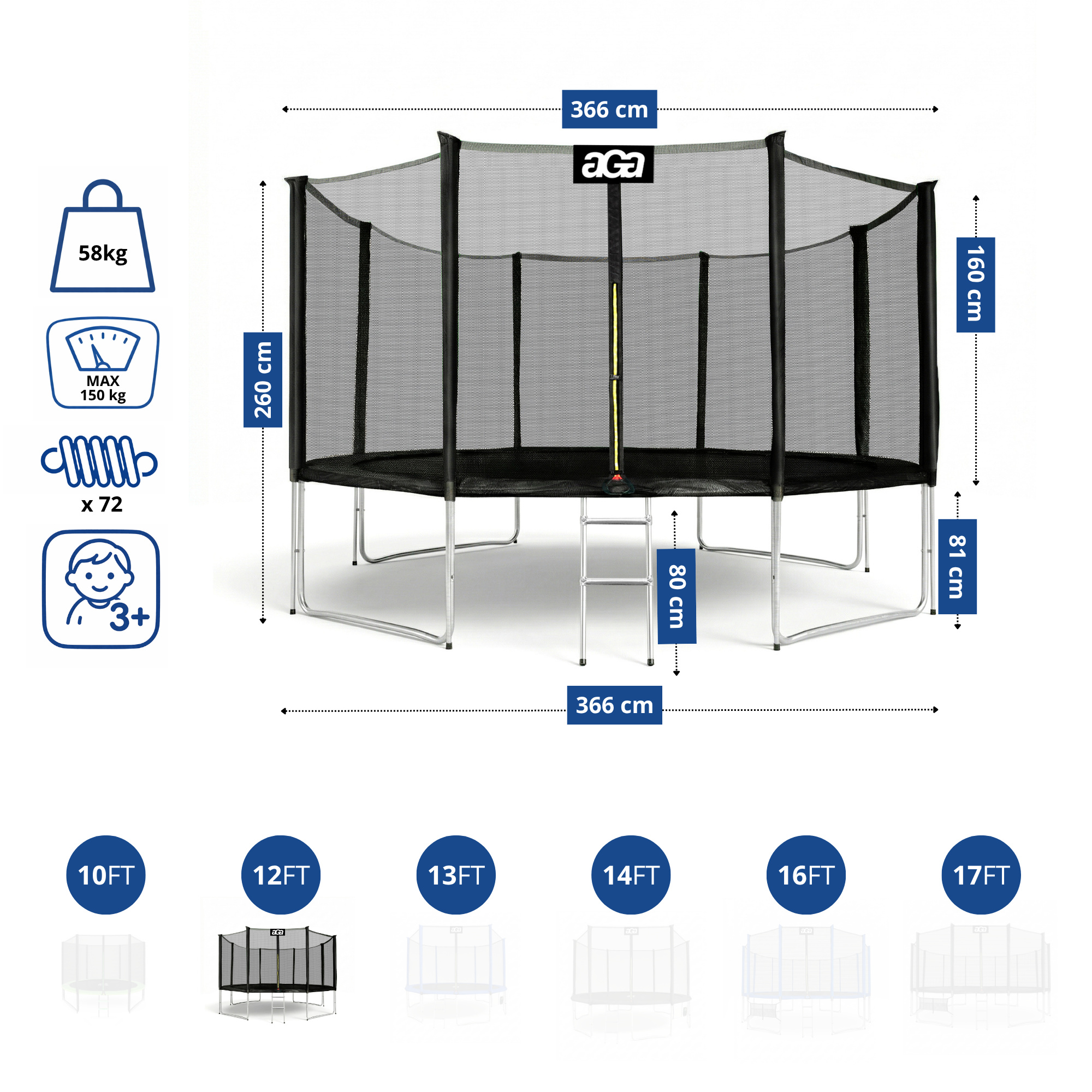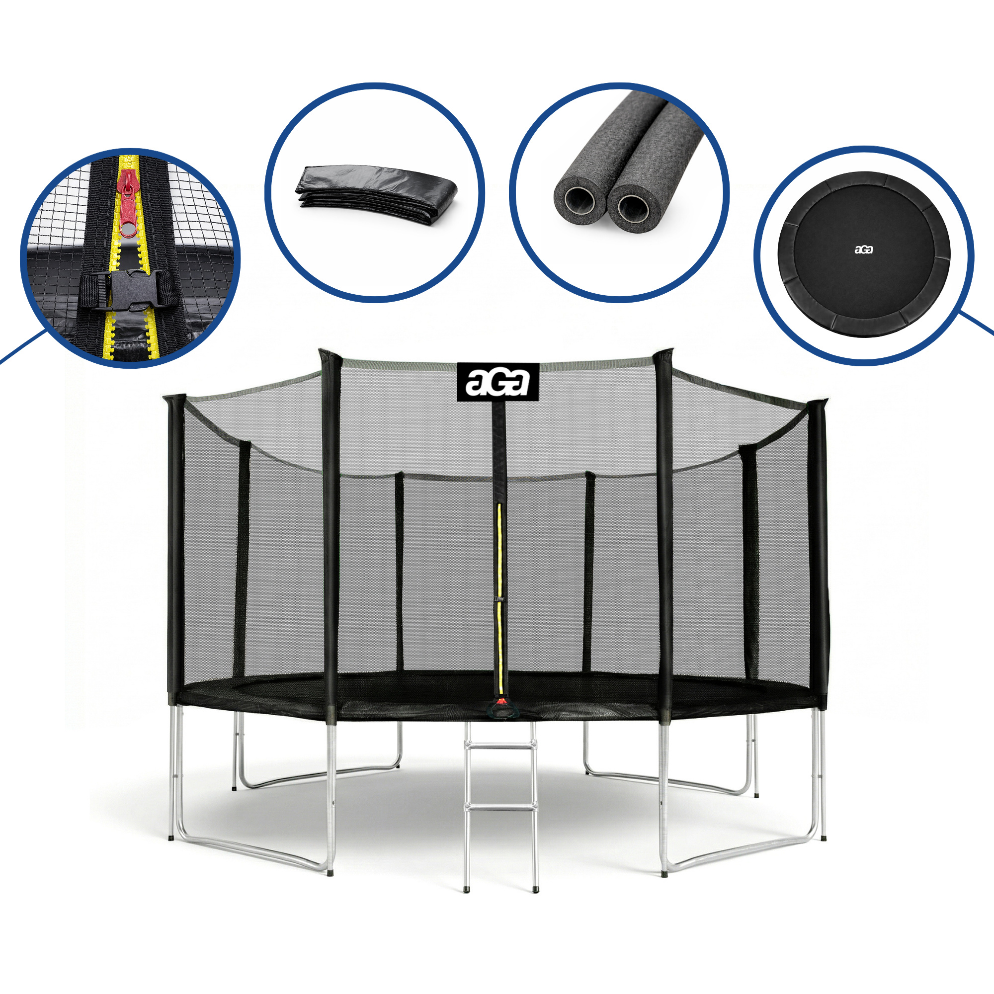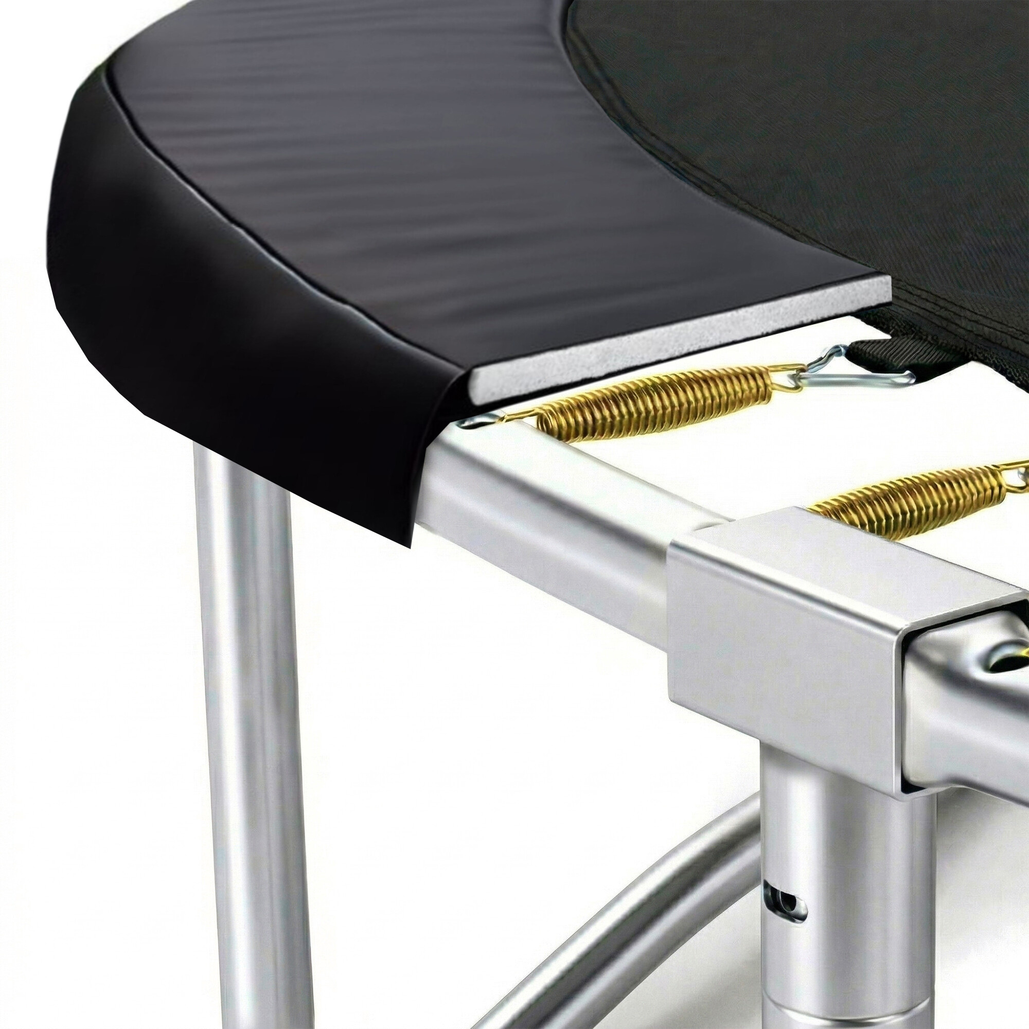 Maximální možnou bezpečnost pak zajištuje polstrovaný obvodový pás (kryt pružin), který překrývá pružiny po celém obvodu trampolíny.