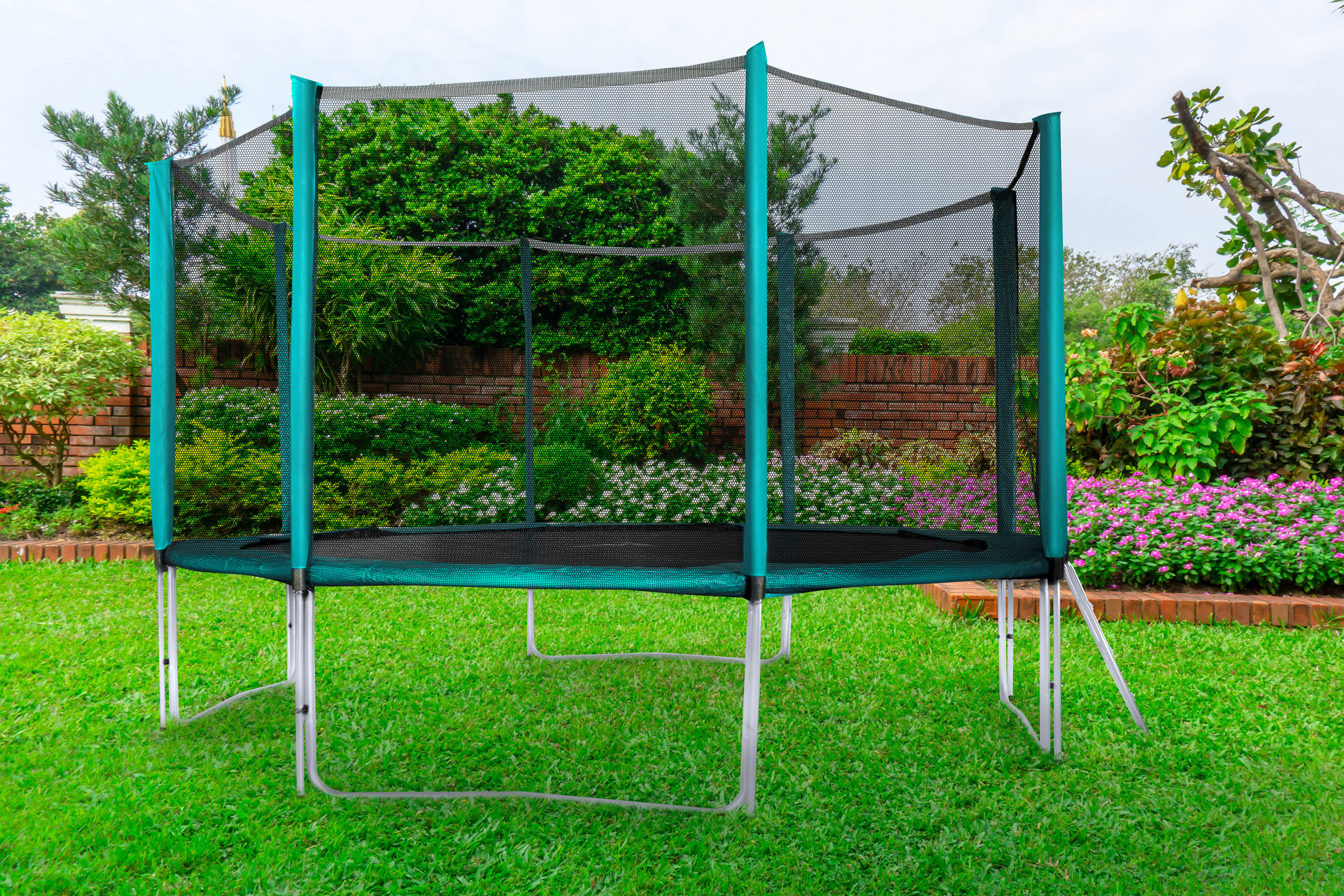Maximální možnou bezpečnost pak zajištuje polstrovaný obvodový pás (kryt pružin), který překrývá pružiny po celém obvodu trampolíny.