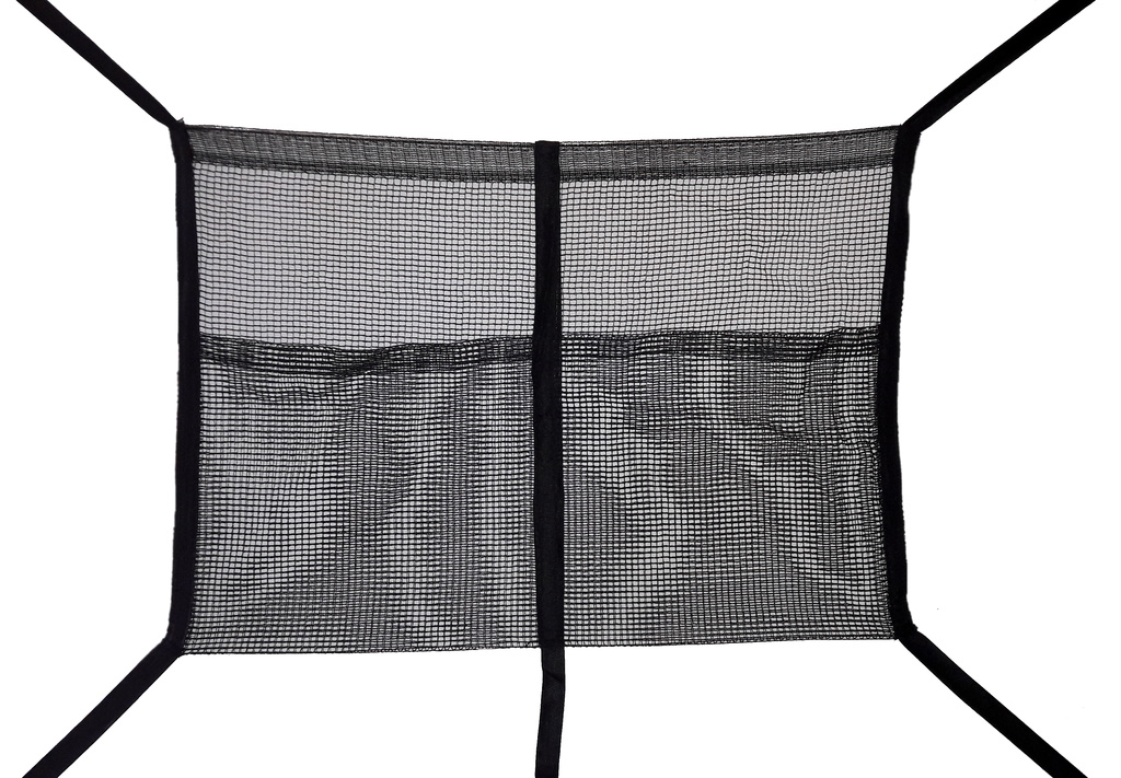 Horní ochranná síť vyrobená z Super-heavy duty PE materiálu, má vstup opatřený zipem a zajištěným pojistkou proti samovolnému rozepnutí.