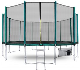 Aga SPORT PRO Trampolína 500 cm Tmavě zelená + ochranná síť + žebřík + kapsa na obuv