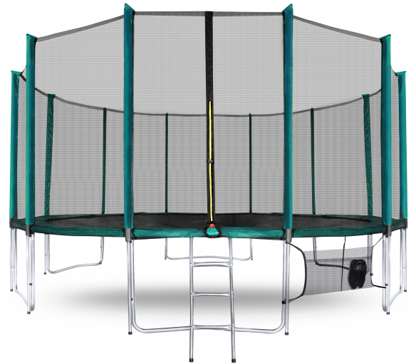 Aga SPORT PRO Trampolína 430 cm Tmavě zelená + ochranná síť + žebřík + kapsa na obuv
