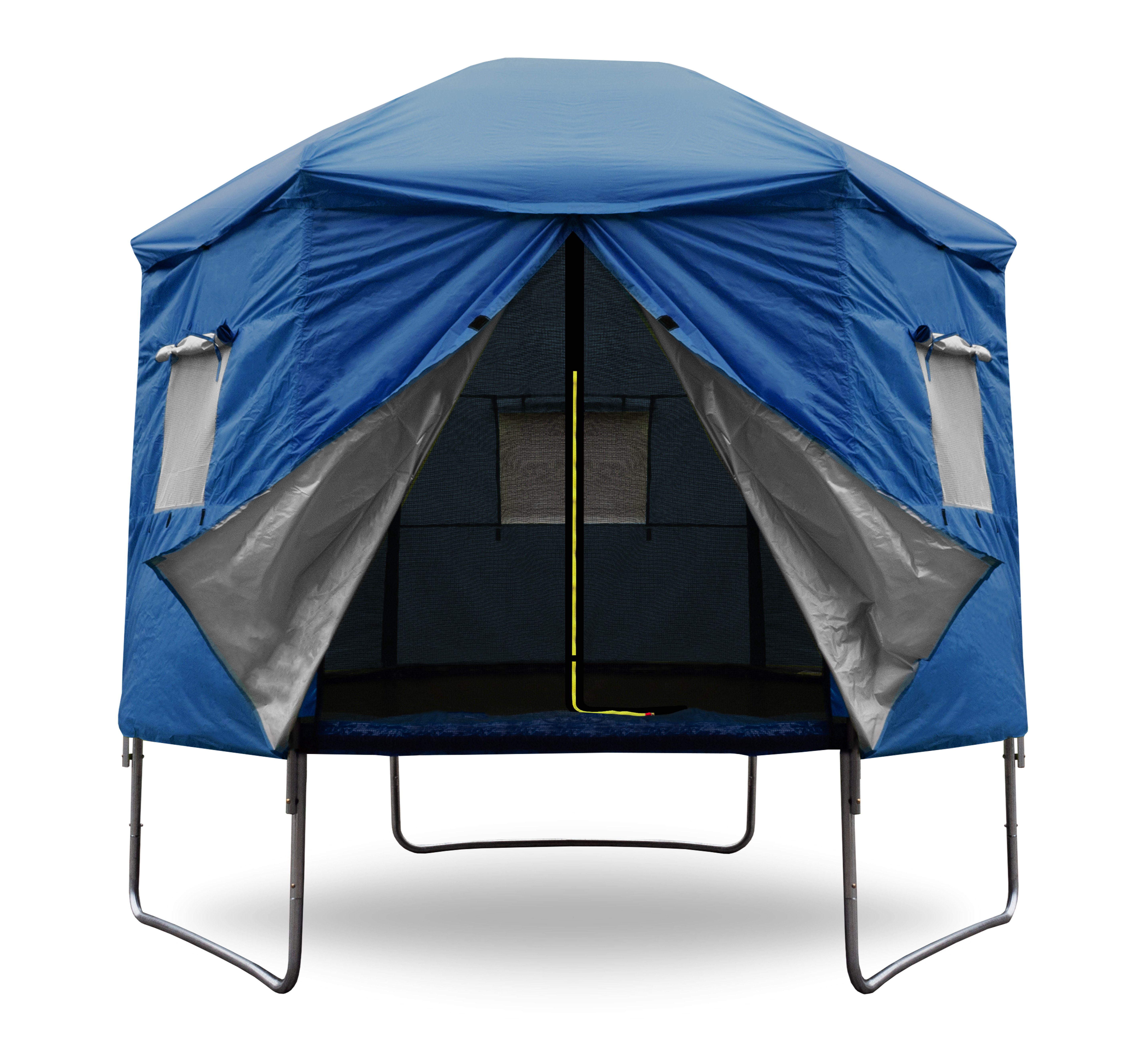 A v době kdy trampolína není aktivně využívána, pomáhá stan chránit odrazovou plochu před znečištěním a UV zářením.