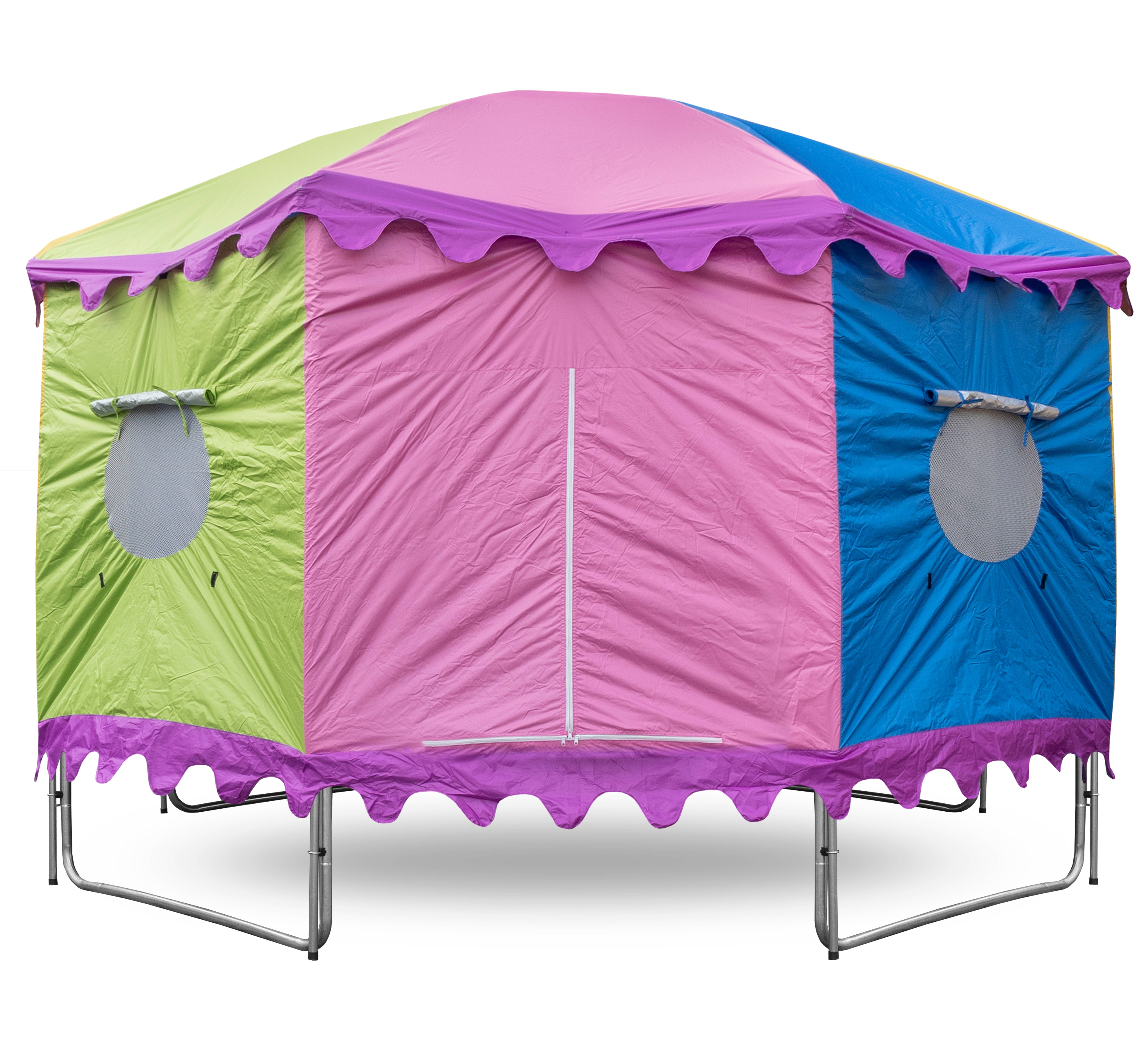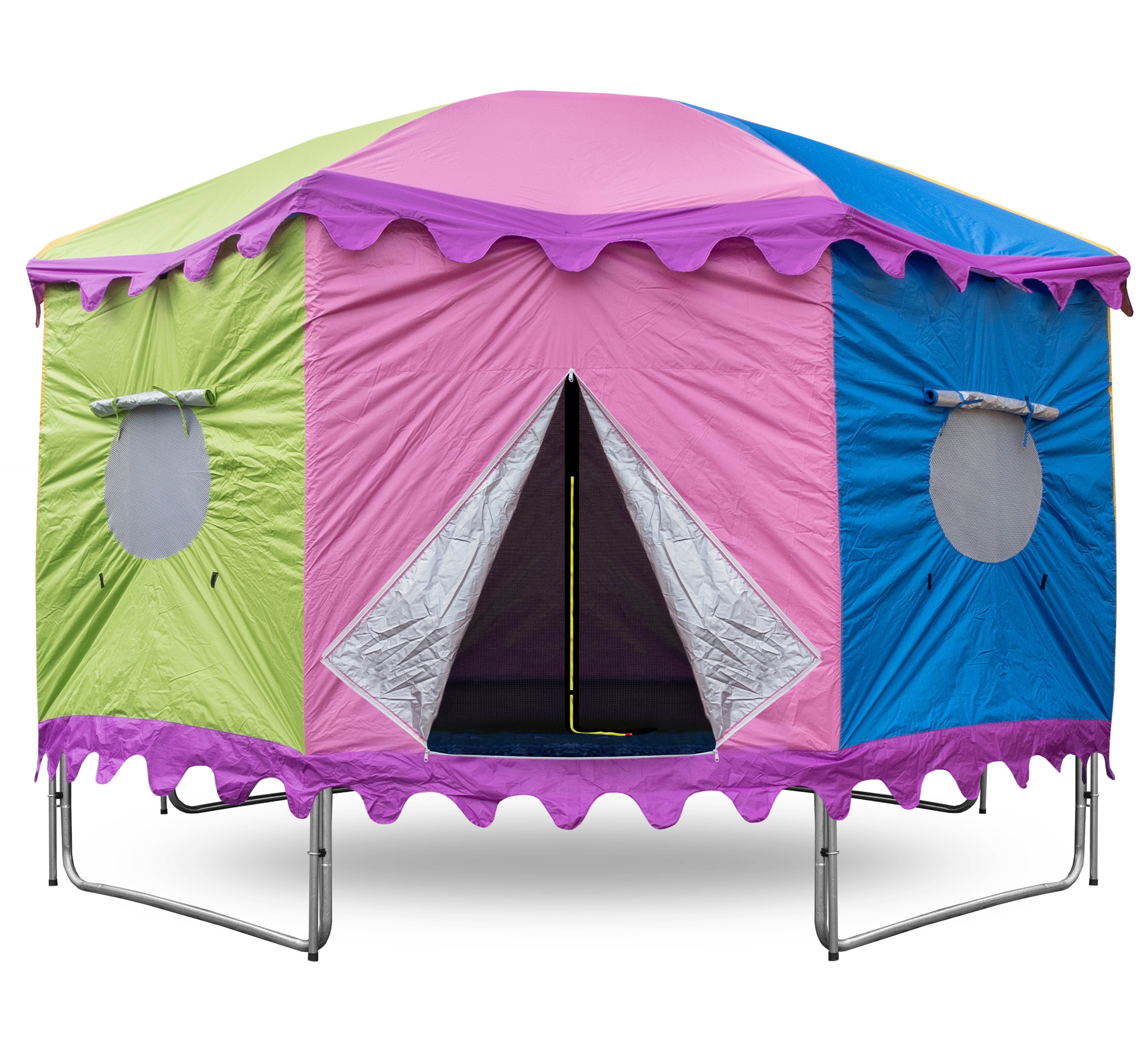 A v době kdy trampolína není aktivně využívána, pomáhá stan chránit odrazovou plochu před znečištěním a UV zářením.