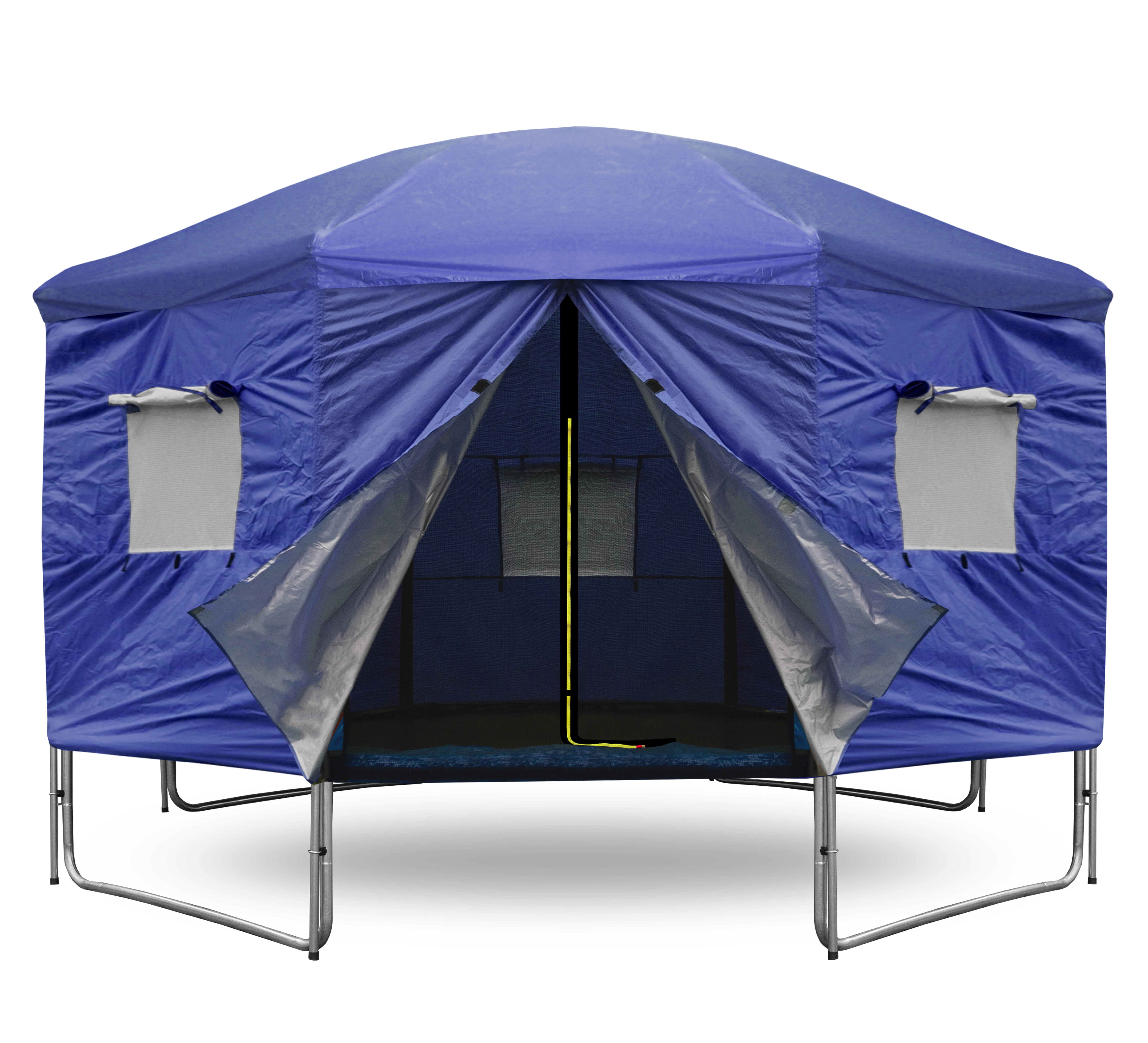 A v době kdy trampolína není aktivně využívána, pomáhá stan chránit odrazovou plochu před znečištěním a UV zářením.