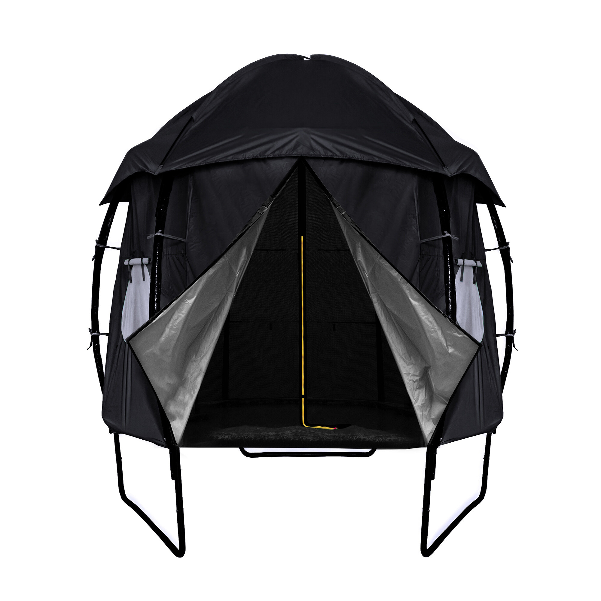 A v době kdy trampolína není aktivně využívána, pomáhá stan chránit odrazovou plochu před znečištěním a UV zářením.
