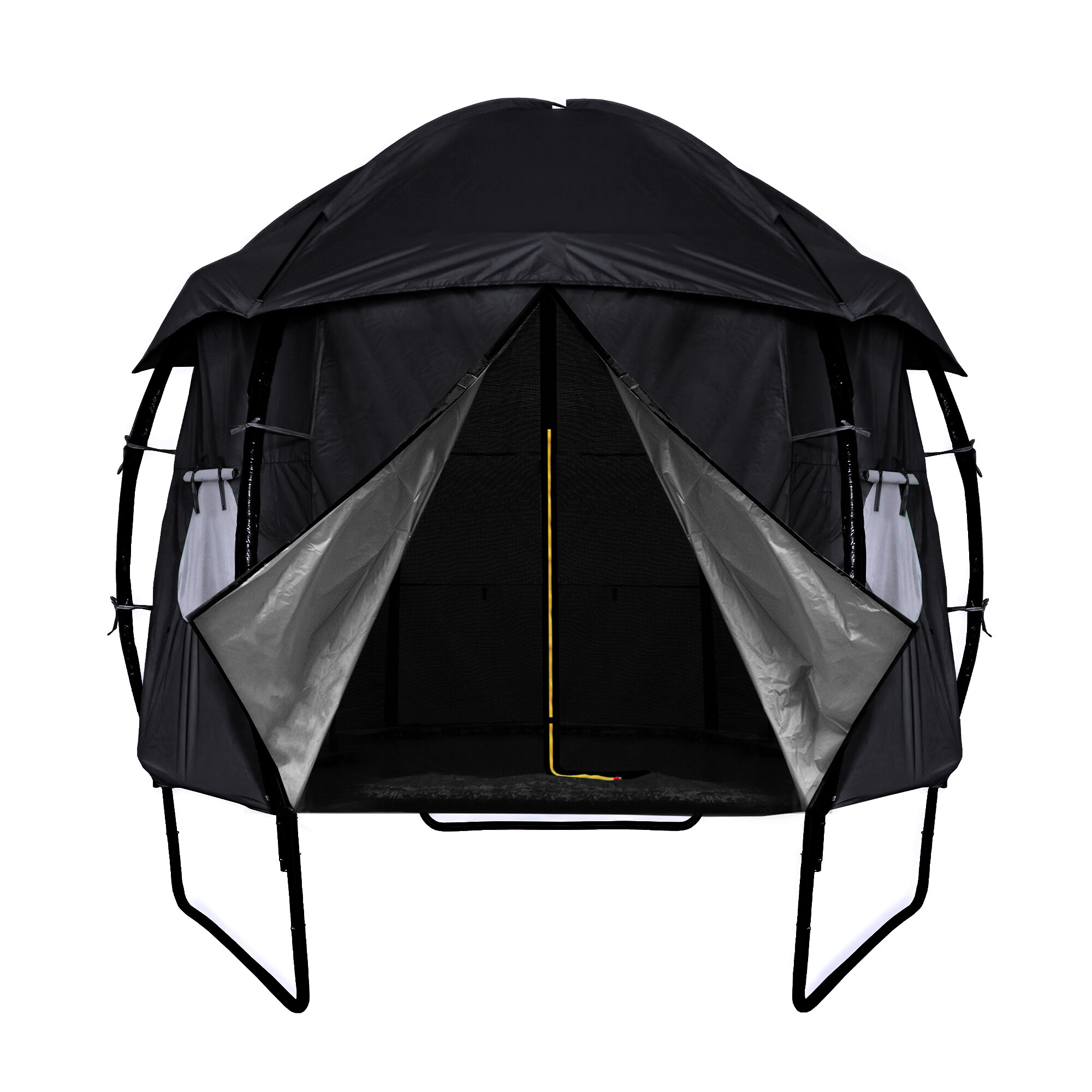 A v době kdy trampolína není aktivně využívána, pomáhá stan chránit odrazovou plochu před znečištěním a UV zářením.