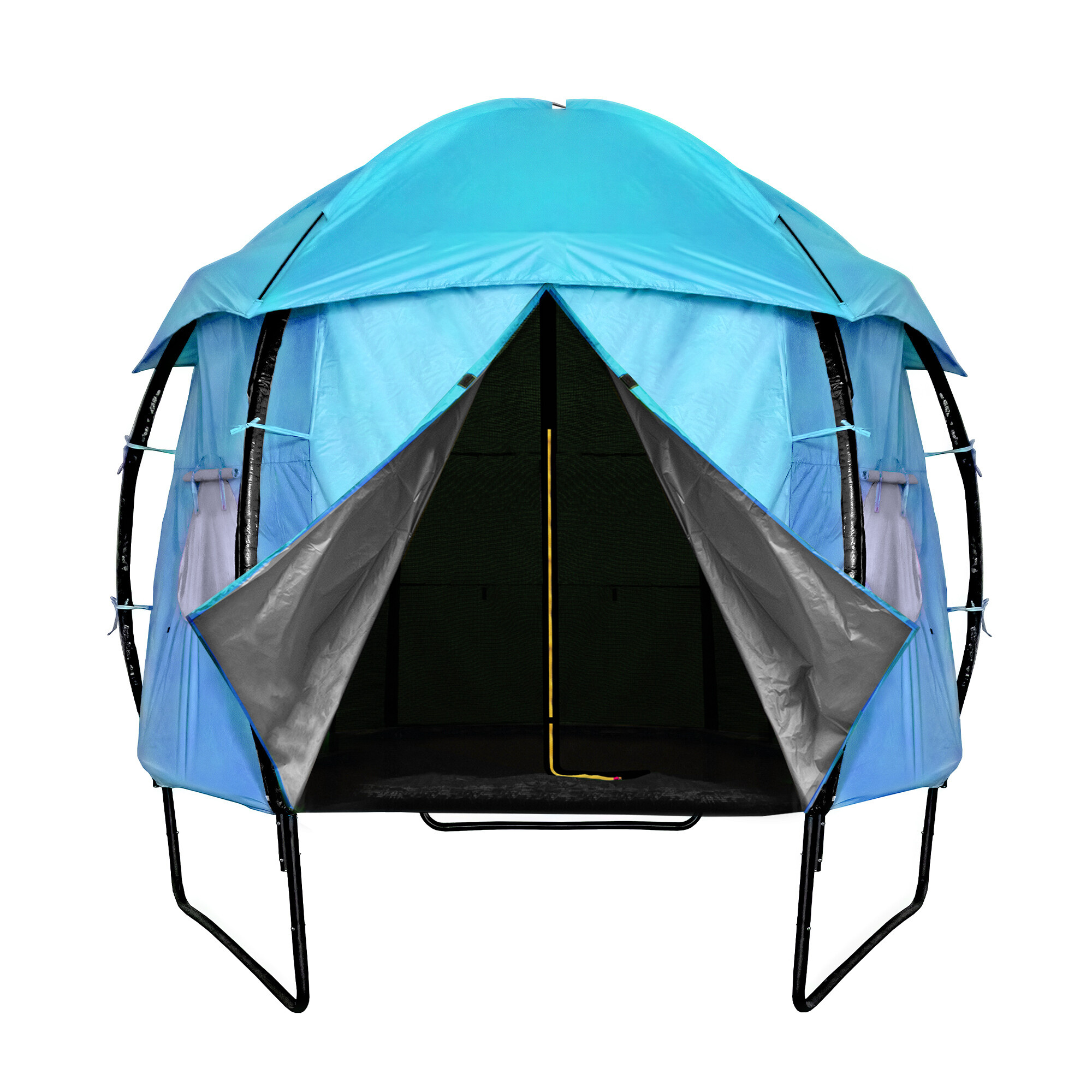 A v době kdy trampolína není aktivně využívána, pomáhá stan chránit odrazovou plochu před znečištěním a UV zářením.