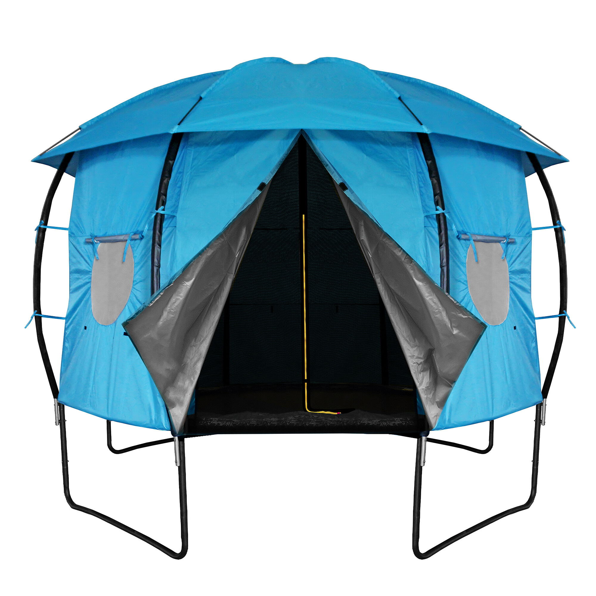 A v době kdy trampolína není aktivně využívána, pomáhá stan chránit odrazovou plochu před znečištěním a UV zářením.