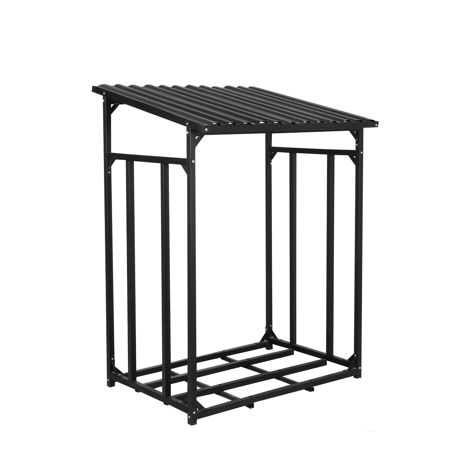 Dřevník je vybaven praktickou stříškou, která chrání dřevo před deštěm a sněhem. Stříška je navržena tak, aby efektivně odváděla vodu a zabránila jejímu hromadění na dřevě. Kromě toho je součástí balení i plachta na přikrytí přední a zadní strany dřevníku, což poskytuje dodatečnou ochranu před vlhkostí a nečistotami.