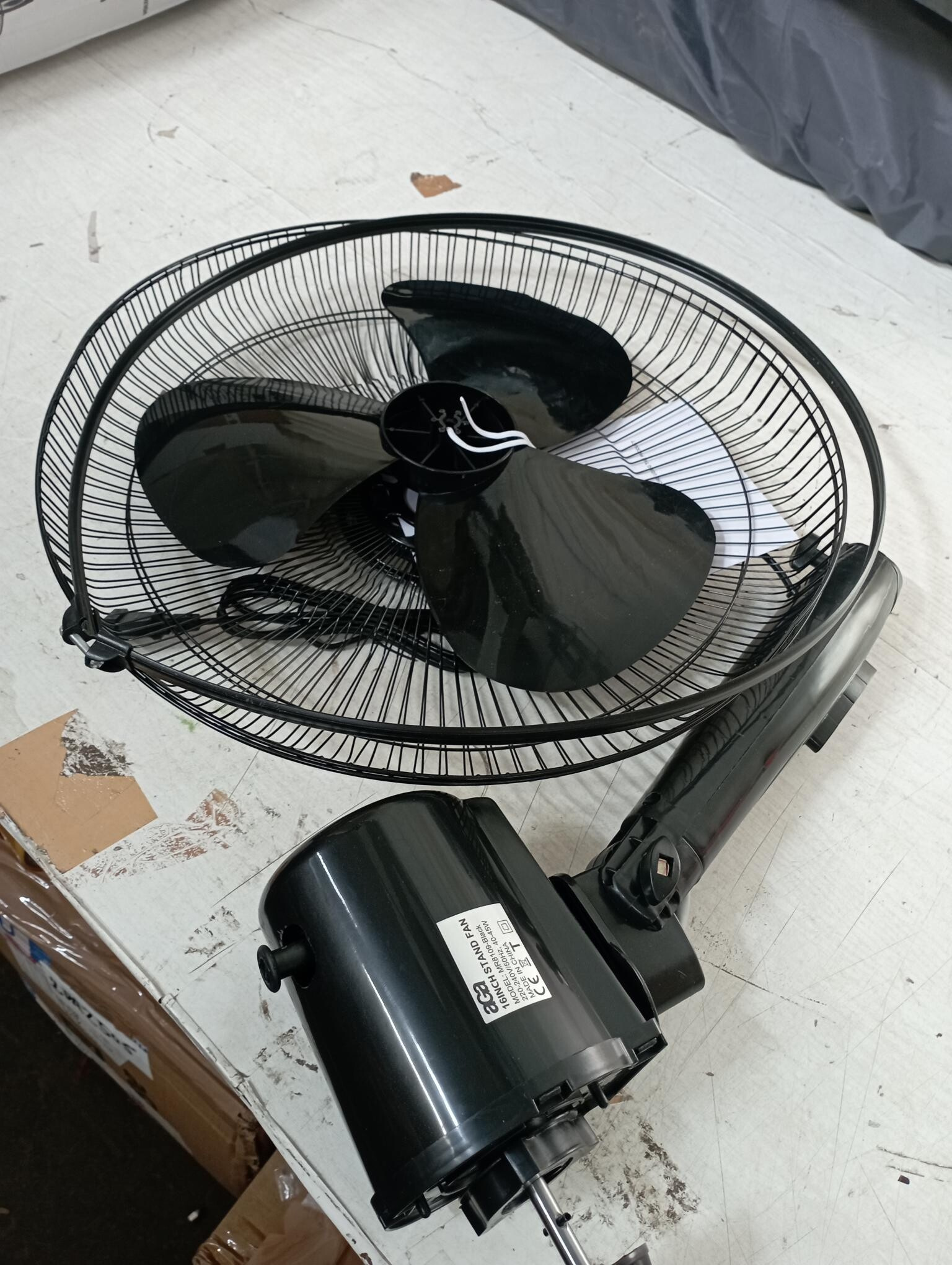 Tento kus má prasklou krytku motoru a je mírně podřený. Ventilátor je jinak kompletní a plně funkční, obal je poškozený.