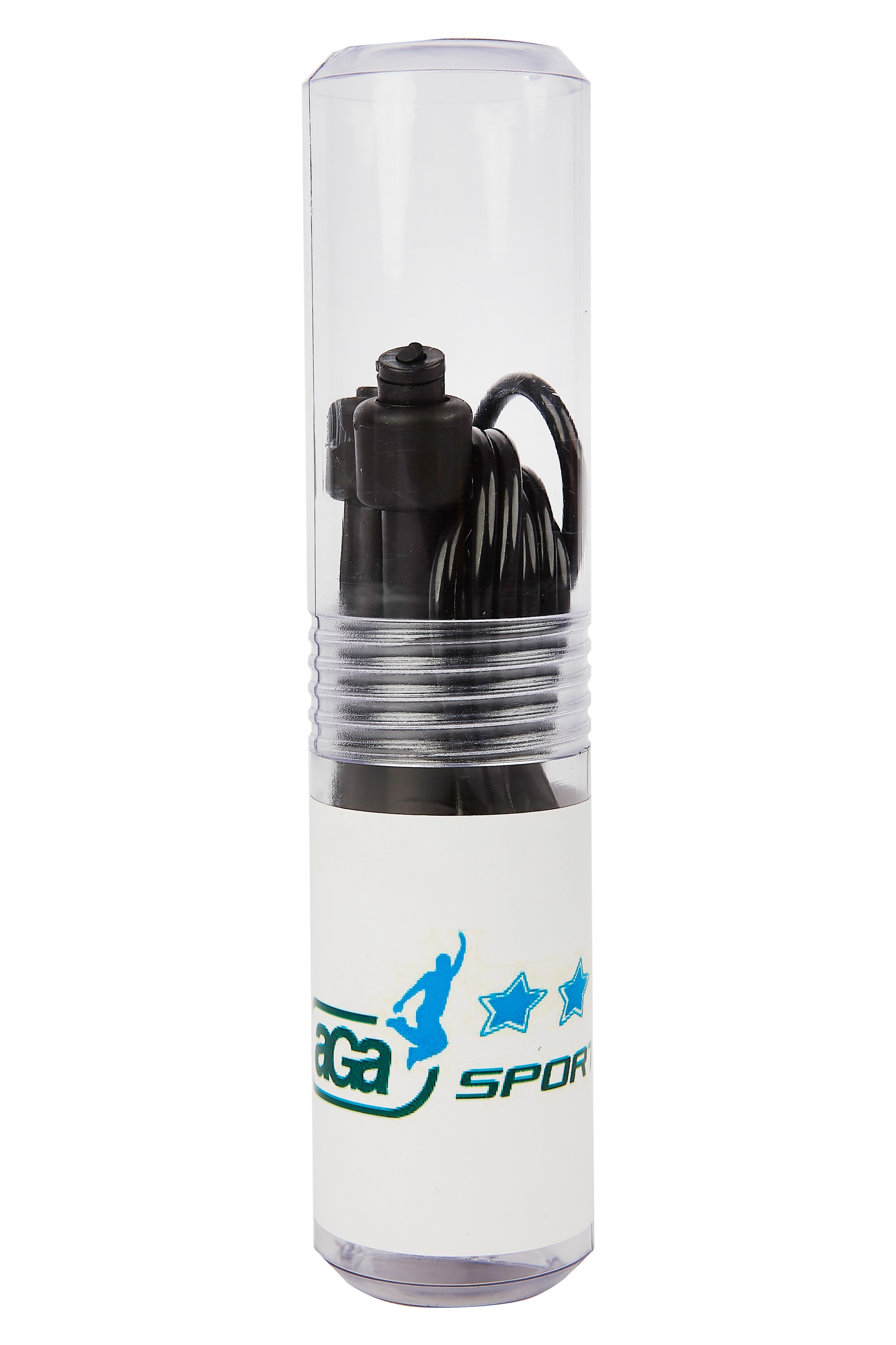 Toto Aga gumové švihadlo váží pouze 80 gramů. Otočné rukojeti jsou z černého plastového materiálu.