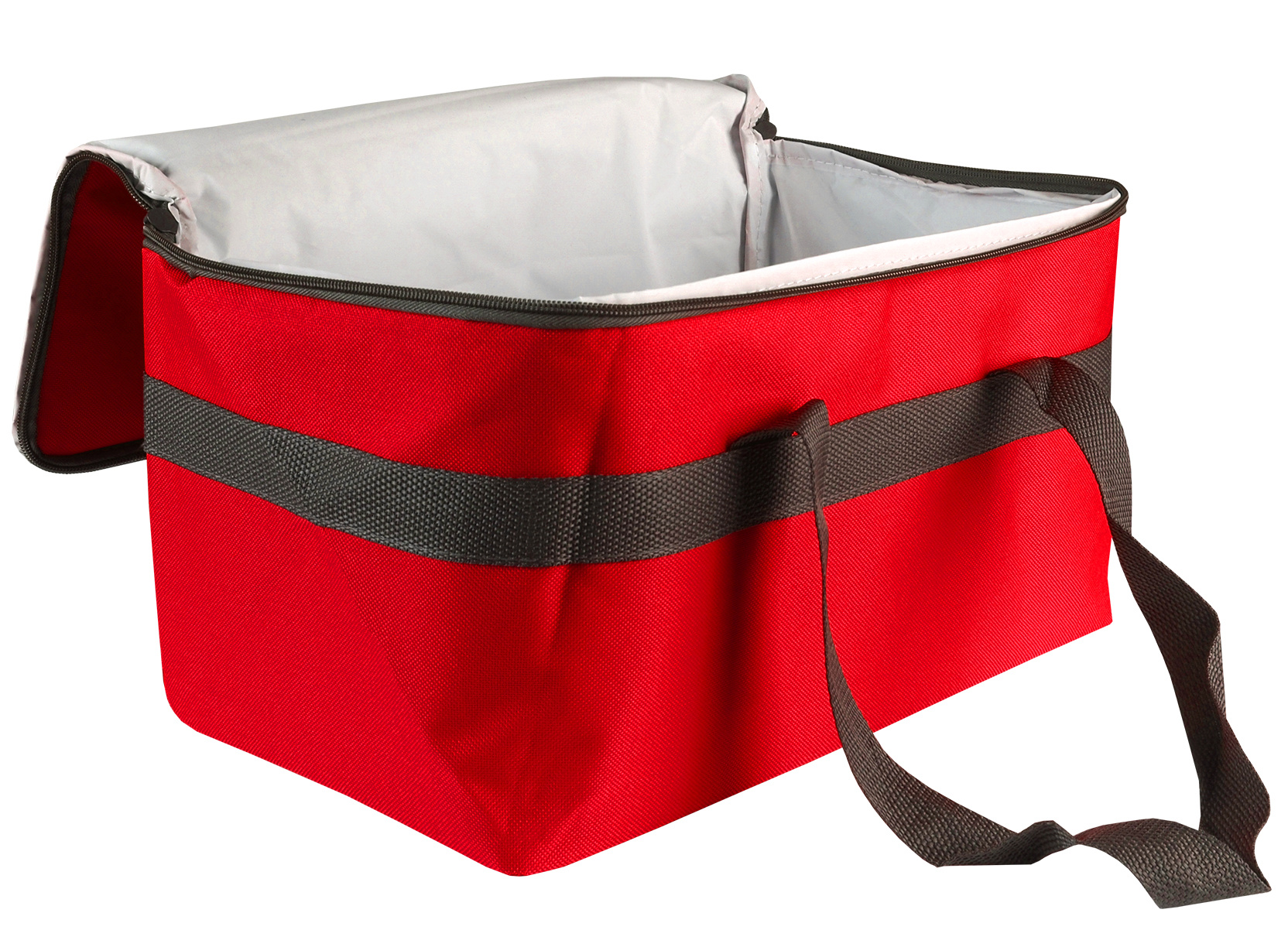 Termoizolační tašku lze otevřít pomocí dvoucestného zipu natolik, že lze víko otevřít až na zadní stranu. Díky tomu je plnění a vyndávání potravin velmi snadné.