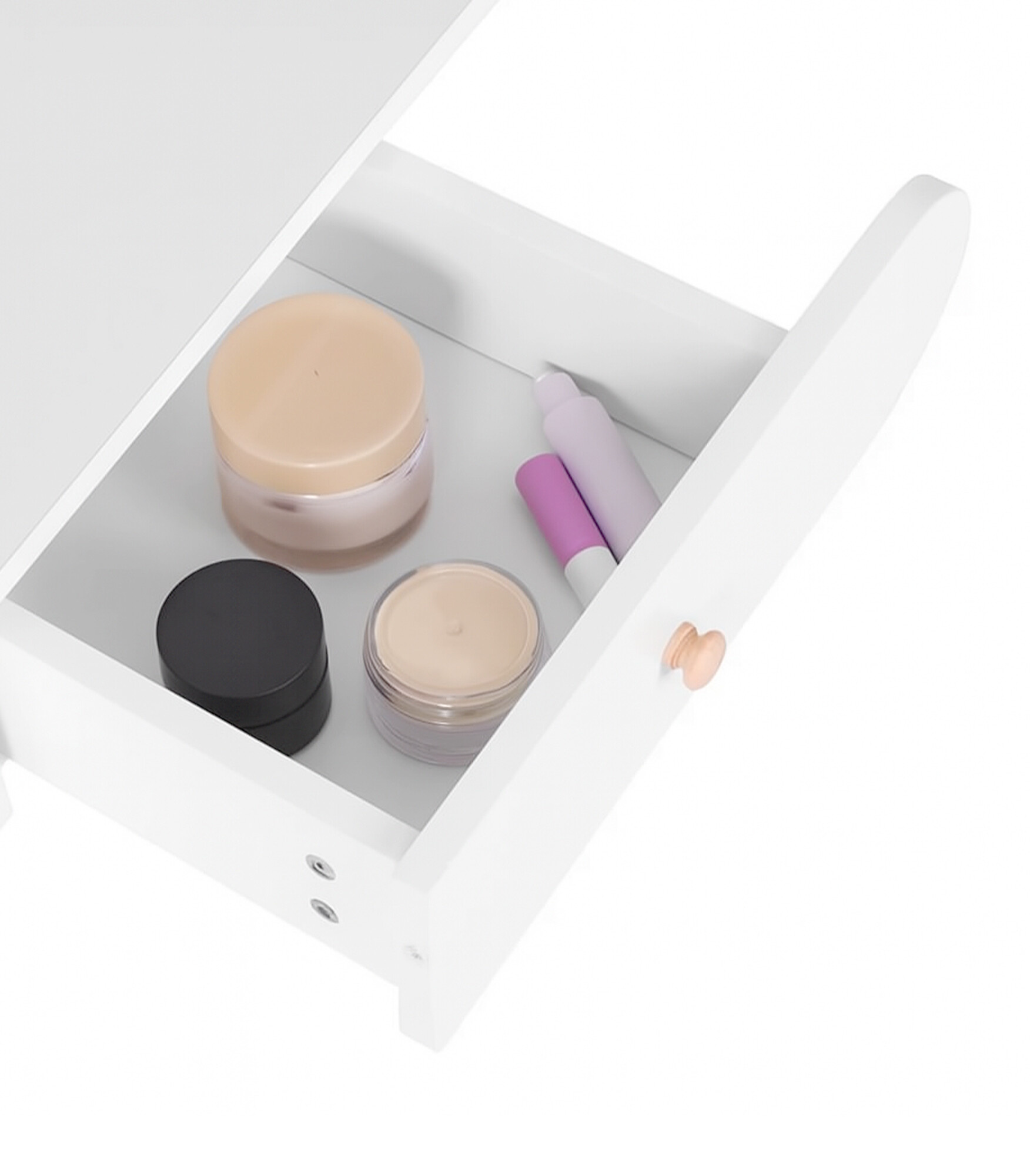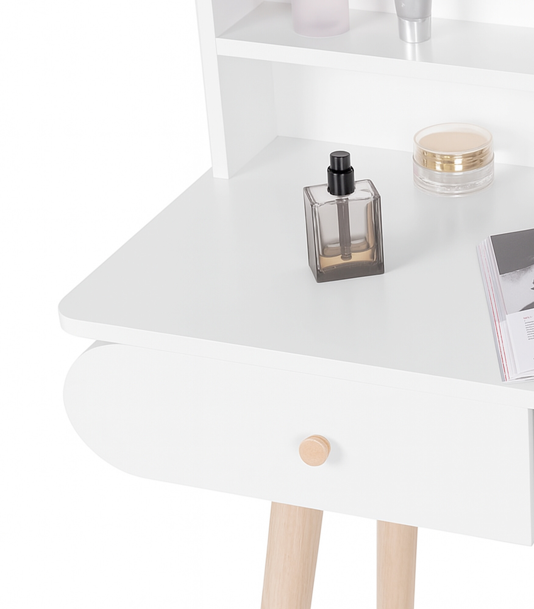 Toaletní stolek má praktické zásuvky – vhodné na ukládání kosmetiky a šperků.