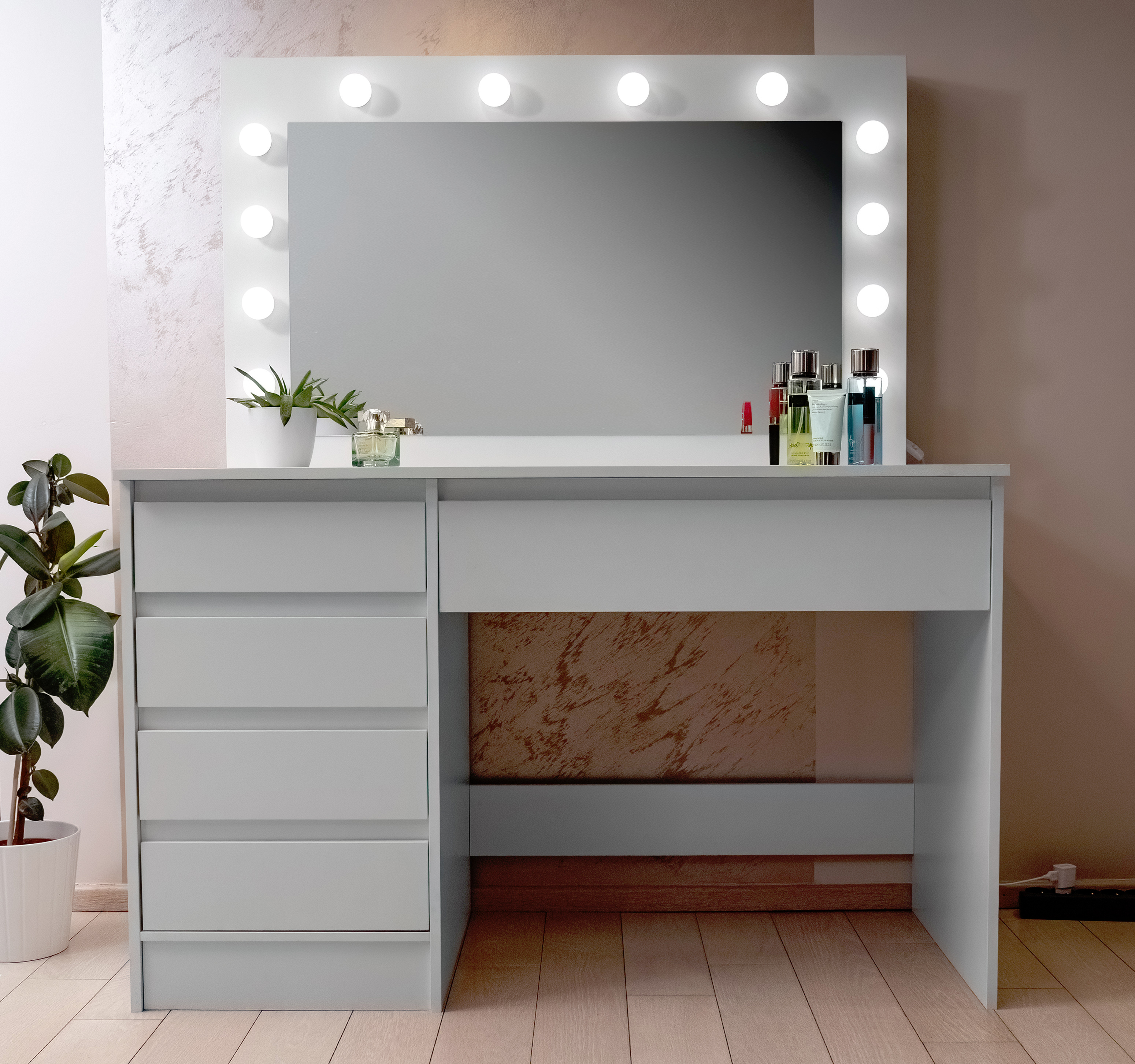 Určitě oceníte i 5 prostorných zásuvek, v kterých si pohodlně odložíte všechny svoje kosmetické pomůcky, šperky a ostatní doplňky.
