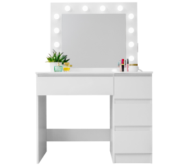 Na zrcadle je 12 LED žárovek, pohodlně se tedy nalíčíte i při špatném přirozeném světle. Taburet je vyrobený z vysoce kvalitní měkké a pěny, na které je možné sedět celé hodiny.