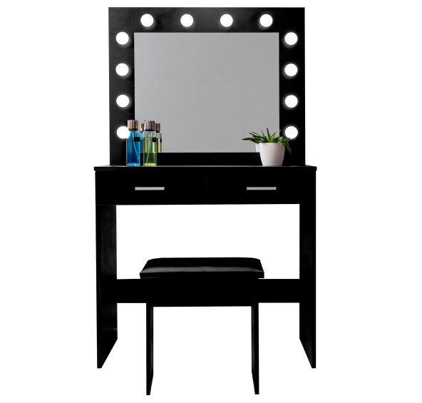 Popis produktu Aga Toaletní stolek se zrcadlem a osvětlením + taburet Matný Černý