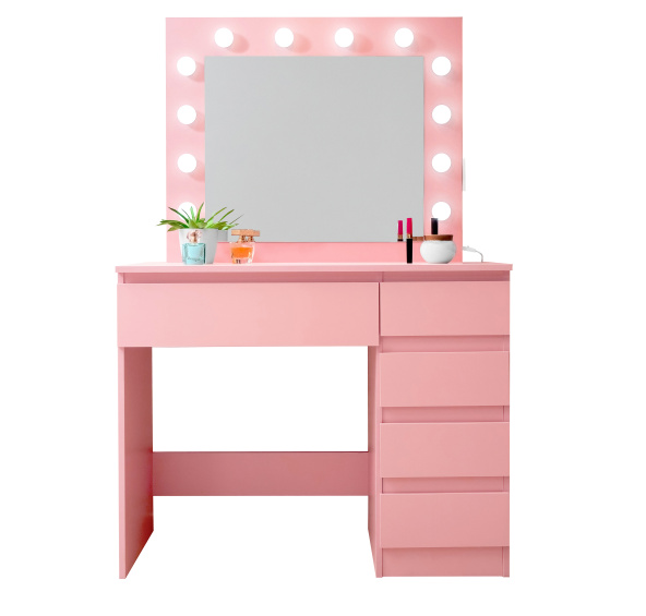 Popis produktu Aga Toaletní stolek se zrcadlem, osvětlením a el.zásuvkou Růžový