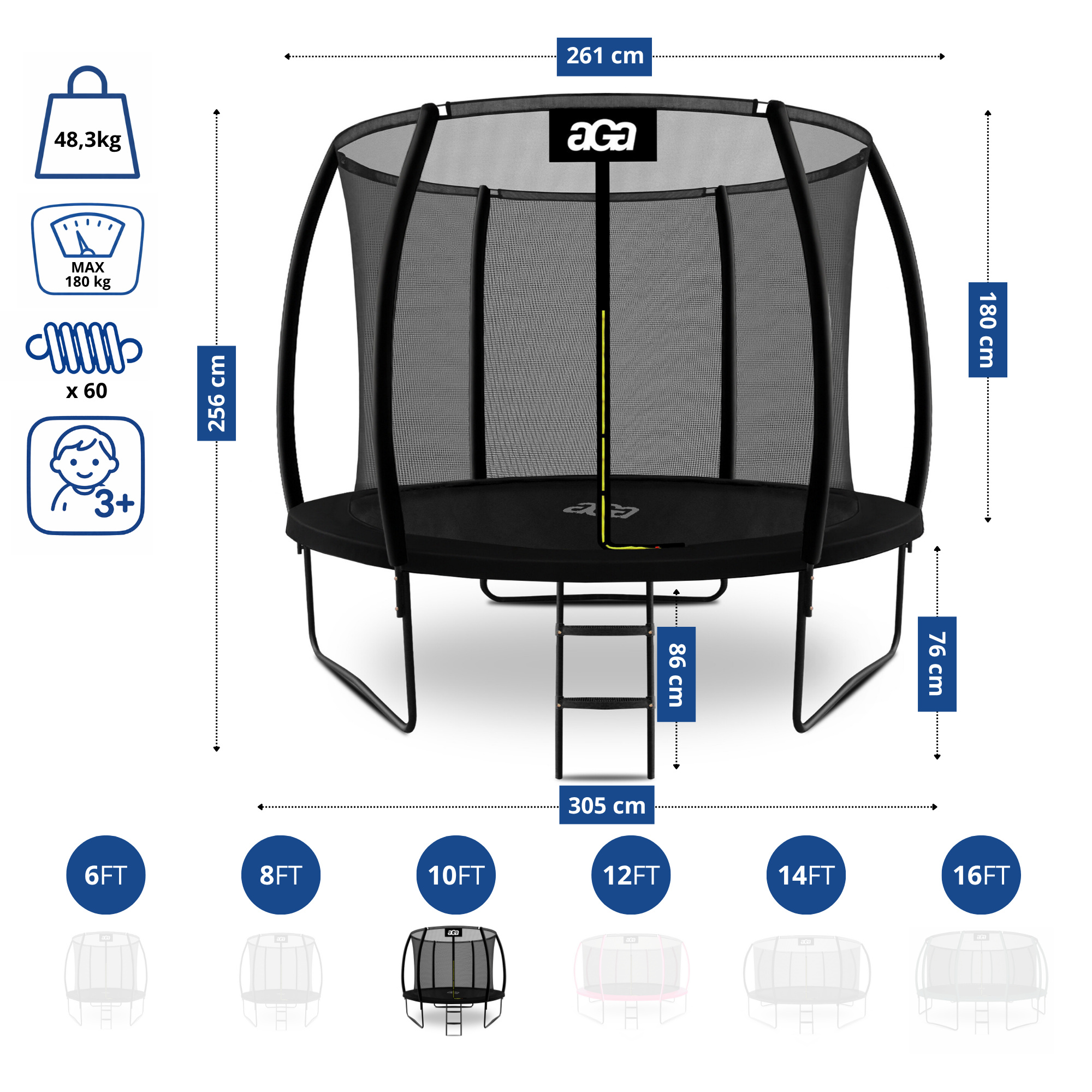 - Průměr trampolíny: 305 cm (10 ft)