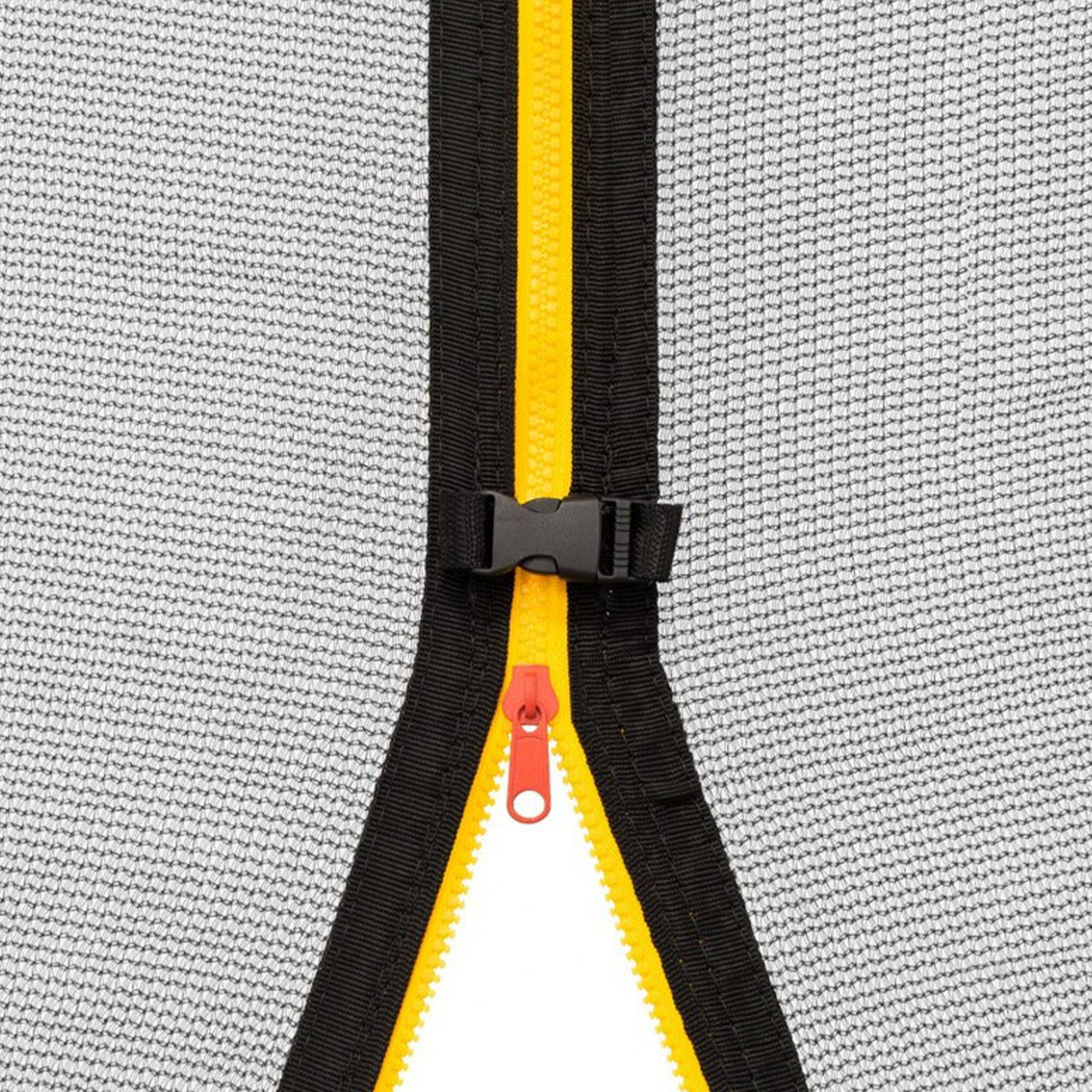 Vstupní otvor je opatřen zipem do tvaru L, tím zajistíte úplné uzavření trampolíny.