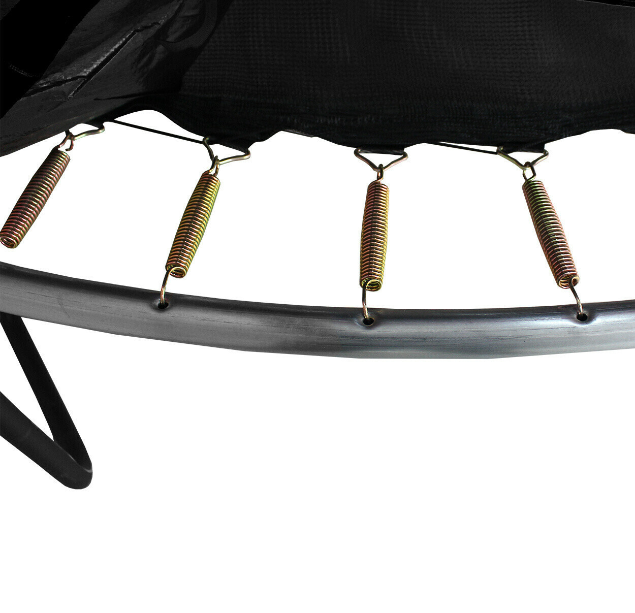 Kruhová Hi-Ten zesílená konstrukce trampolíny je vyrobená z kvalitní galvanizované oceli z vynikající odolností proti korozi, U nohy mají povrchovou úpravu práškovou barvou.