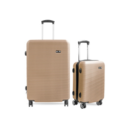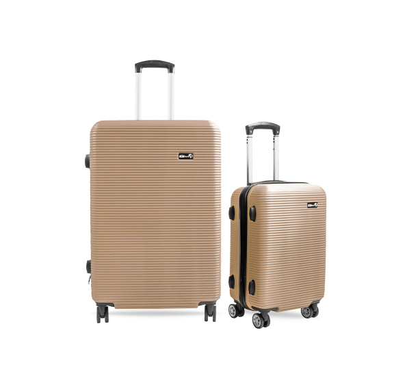 Popis produktu Aga Travel Sada cestovních kufrů CZ253 ZlatáBarvazlatáMateriálABSObjem189 lOba kufry mírně odřené, plně funkční. Specifikace sady dvou cestovních kufrů Aga Travel. Vlastnosti a funkce: ABS plastová tvrdá skořepina Vnitřní fixační popruhy Dělicí přepážka s kapsou na zip Bezpečnostní zámek Kolečka otočná o 360° 2 nosné rukojeti na horní a boční straně kufru Třístupňová teleskopická rukojeť s aretačním tlačítkem Hlavní komora s dvoucestným zipem Parametry: Materiál: ABS Barva: Šampaňská Set: Obsahuje 2 kufry Počet koleček: 4 Rozměry malého kufru: 56x38x23 cm Objem malého kufru: 33 l Hmotnost malého kufru: 2,8 kg Rozměry velkého kufru: 76x50x30 cm Objem velkého kufru: 93 l Hmotnost velkého kufru: 4,2 kg Záruka: 24 měsíců Výrobce: Aga BarvazlatáMateriálABSObjem189 lBarvazlatáMateriálABSObjem189 l
