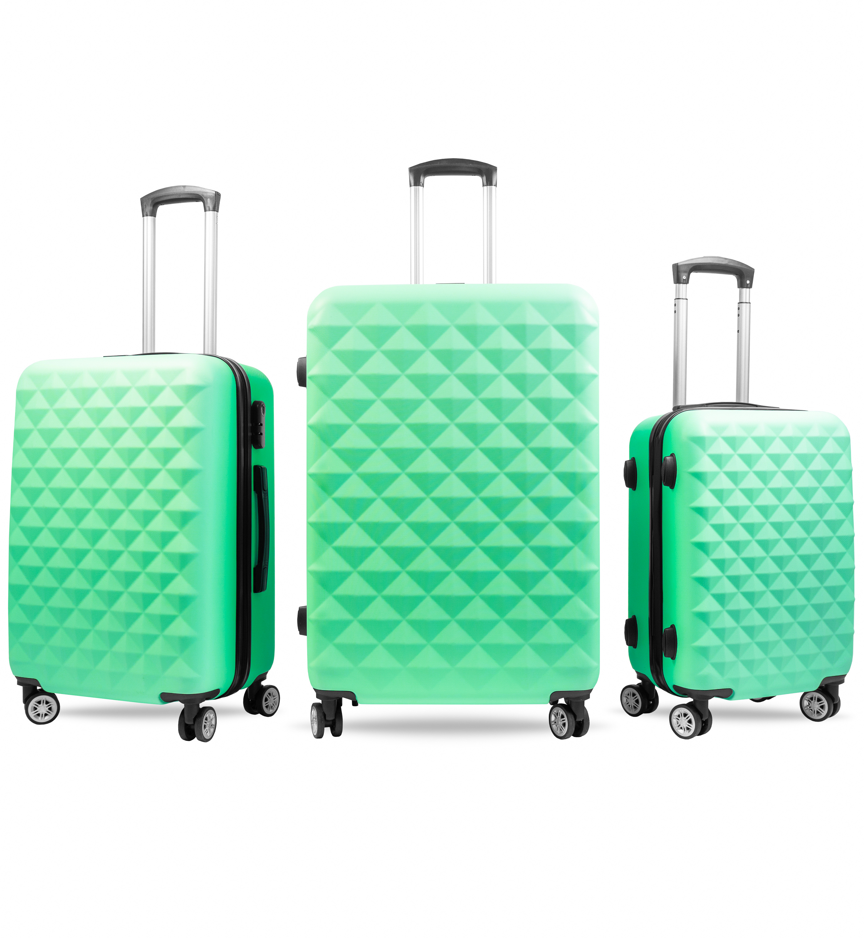 Všechny cestovní kufry v sadě jsou vybaveny čtyřmi otočnými ( o 360 ° ) dvojkolečky, díky nimž máte možnost kufr táhnout, což vám velmi usnadní manipulaci.