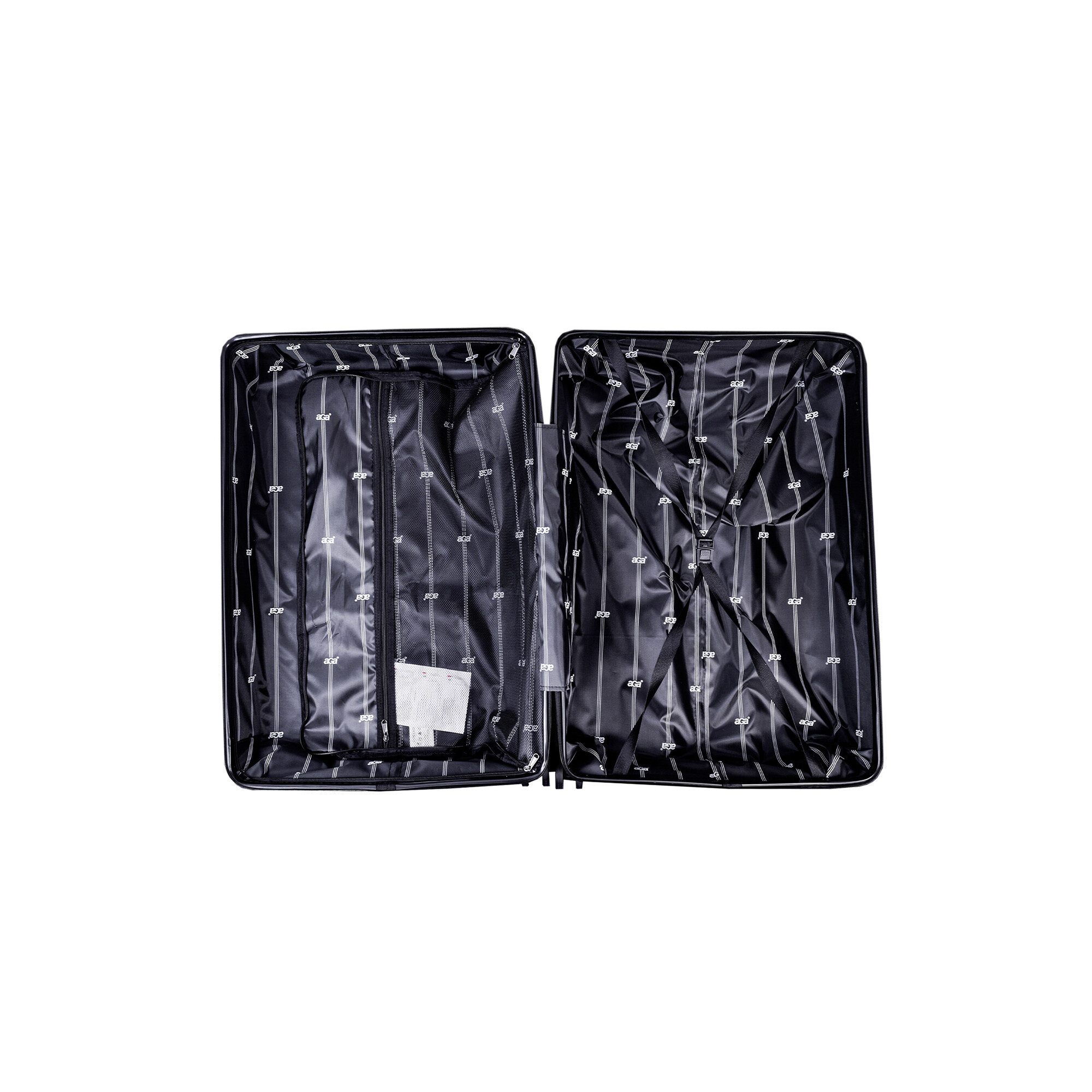 Vnitřní prostor kufru je navržen tak, aby vám poskytl maximální pohodlí při balení. Kufr obsahuje vnitřní fixační popruhy, které udrží vaše věci na místě a zabrání jejich pohybu během přepravy. Dále je zde dělicí přepážka s kapsou na zip, která vám umožní oddělit různé typy oblečení nebo jiné předměty a udržet je organizované.