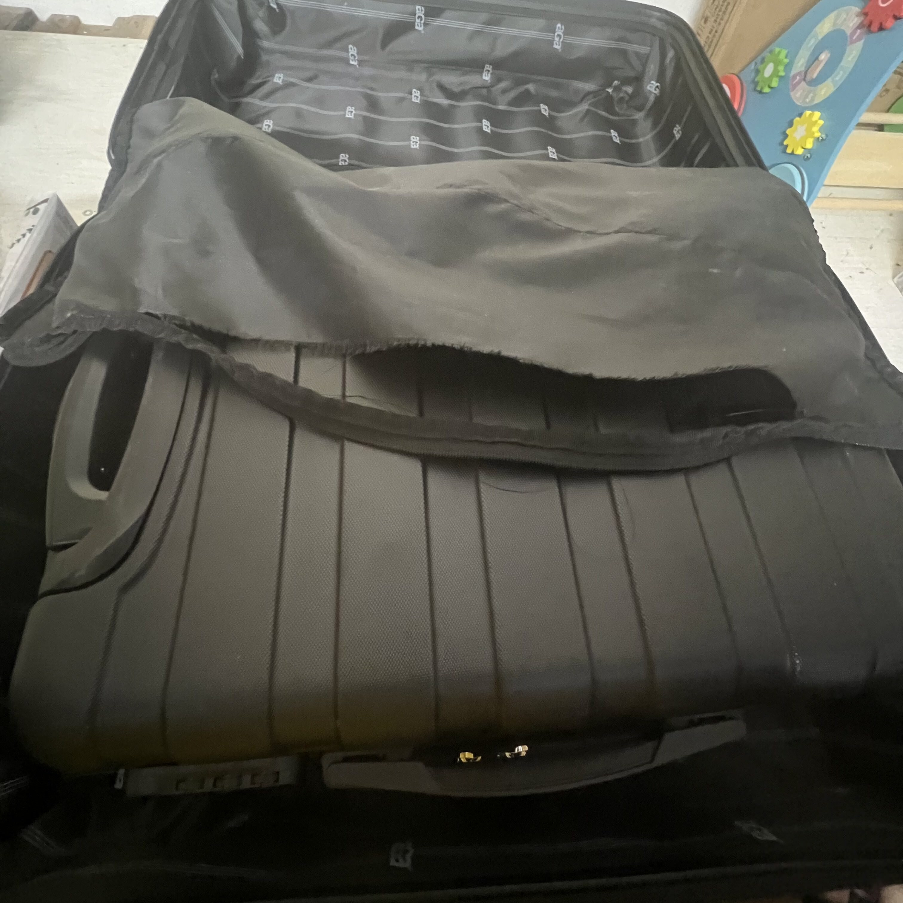 Velký kufr má uvnitř roztrženou kapu, je mírně poškrábaný. Kufry jsou použité.
