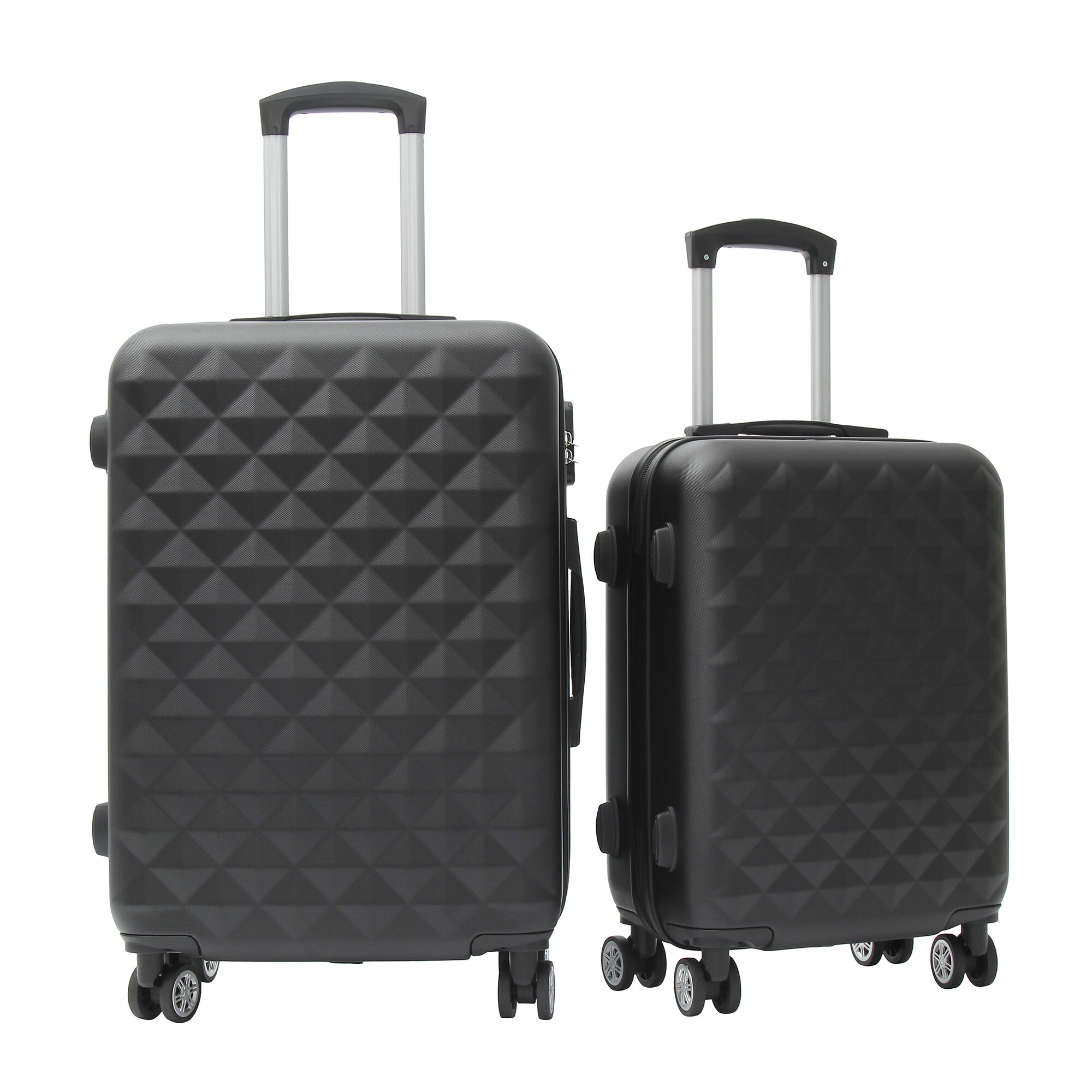 Každý kufr je vybaven 4 otočnými a zdvojenými kolečky, které umožňují snadnou a plynulou manipulaci ve všech směrech. Díky těmto kolečkům můžete kufry snadno přemisťovat i v úzkých prostorách, jako jsou letištní haly nebo hotelové chodby. Navíc, zdvojená kolečka zajišťují větší stabilitu a odolnost proti opotřebení.